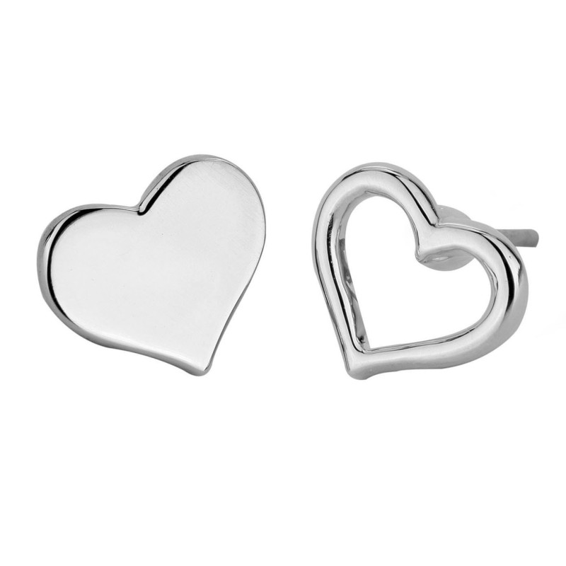 Dit speelse paar geplatineerde (zilverkleurige) oorbellen van Osira bestaat uit een open en een gevuld hartje en geeft een extra touch aan je outfit.