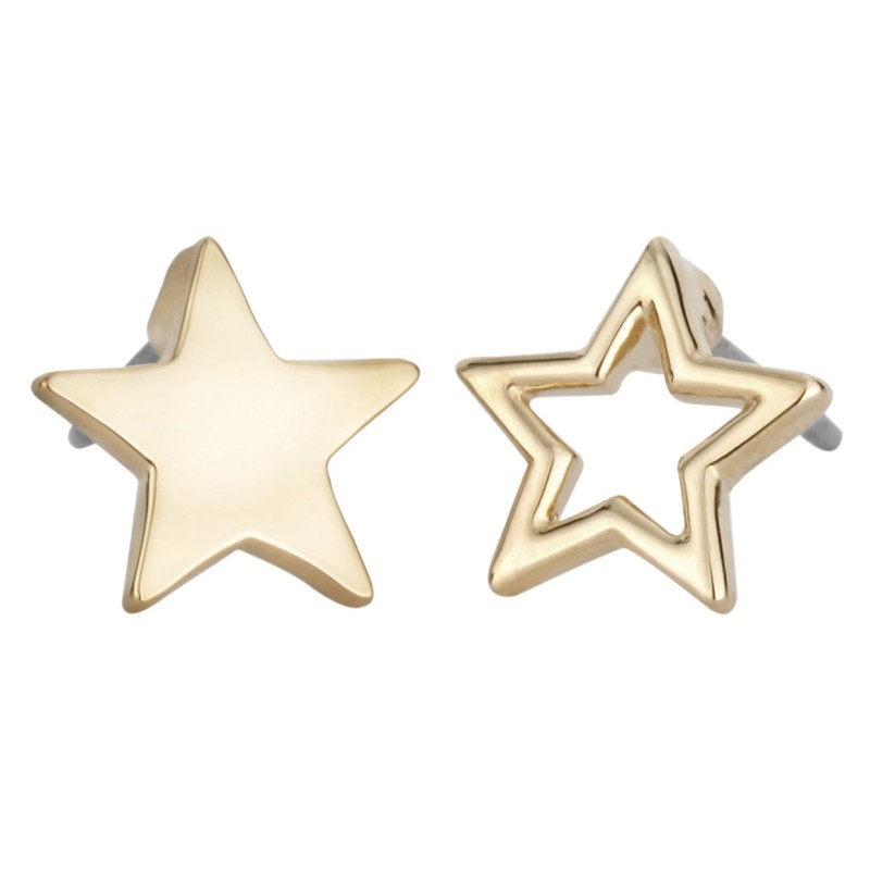 Dit speelse paar 22 karaat vergulde oorbellen van Osira bestaat uit een open en een gevuld sterretje en geeft een extra touch aan je outfit.
