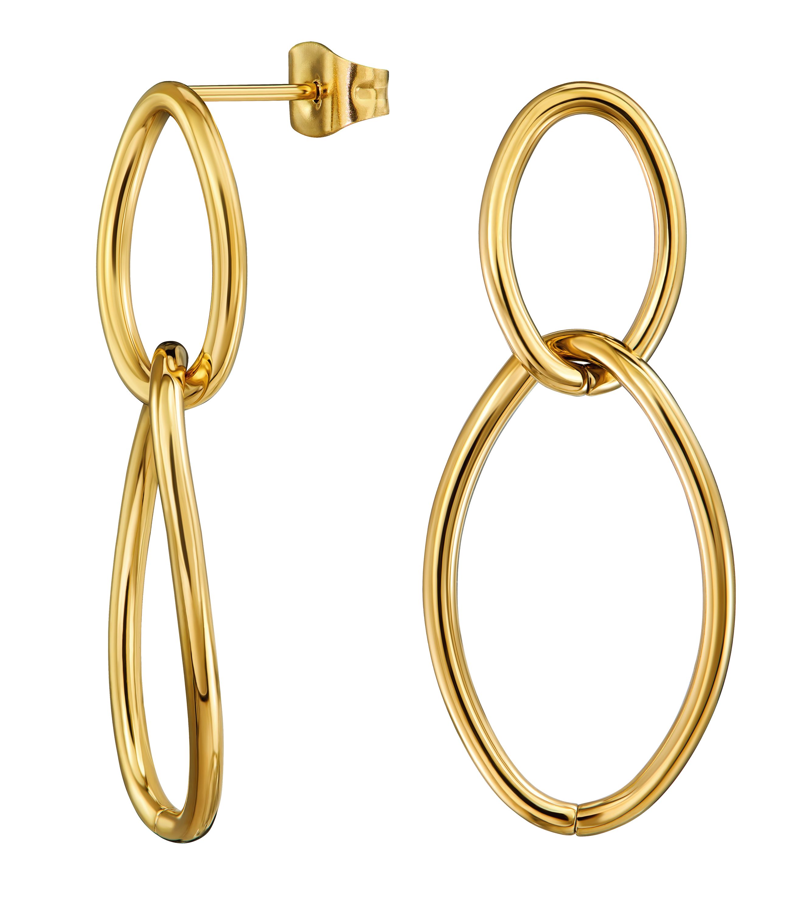 Traveller Oorhangers - Edelstaal - Verguld - Ringen - 35x15 mm