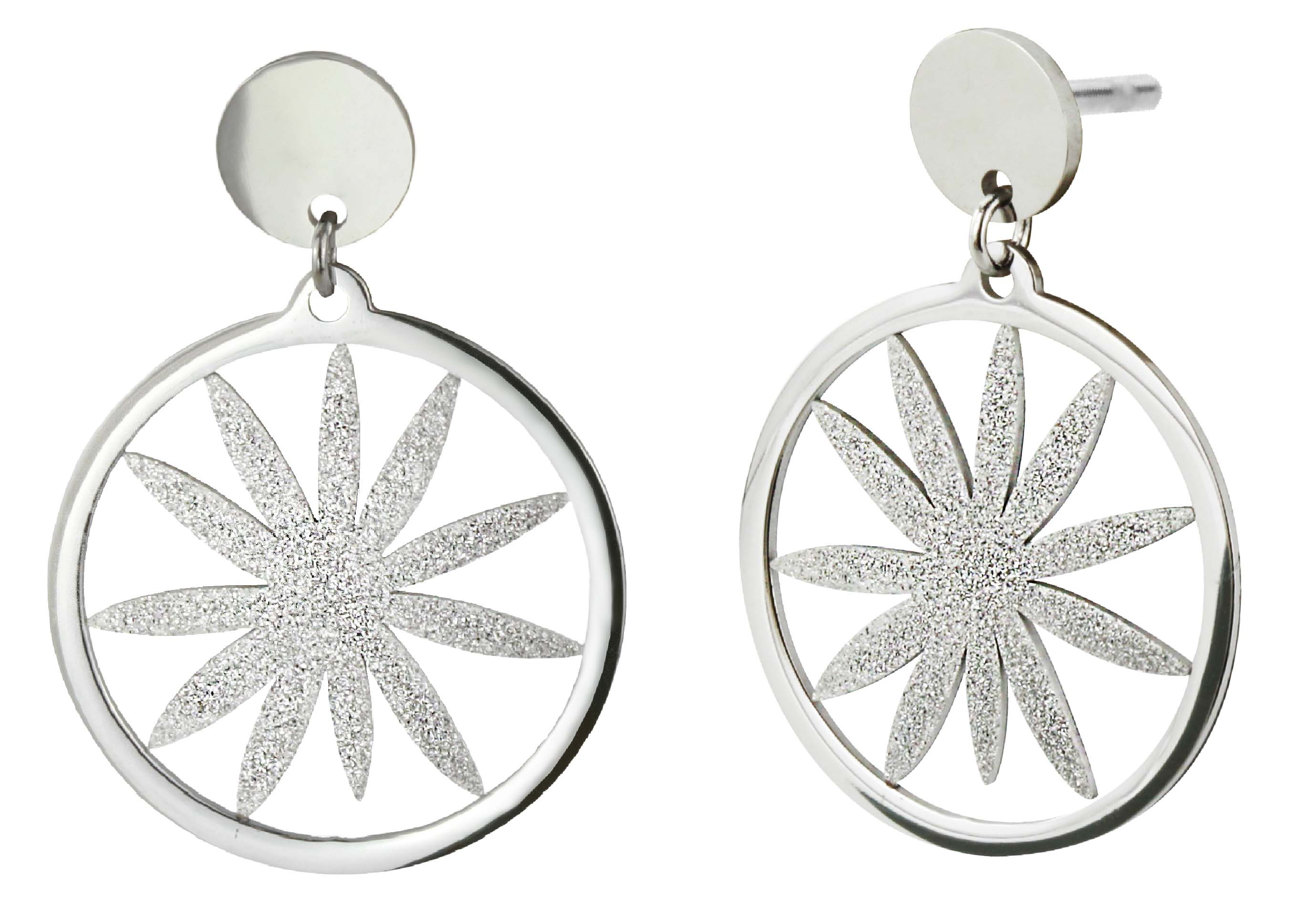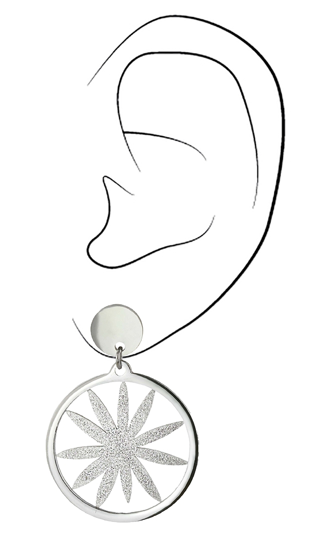 Traveller Oorhangers - Zilverkleurig - Edelstaal - Glittereffect - Bloem - 35x25 mm