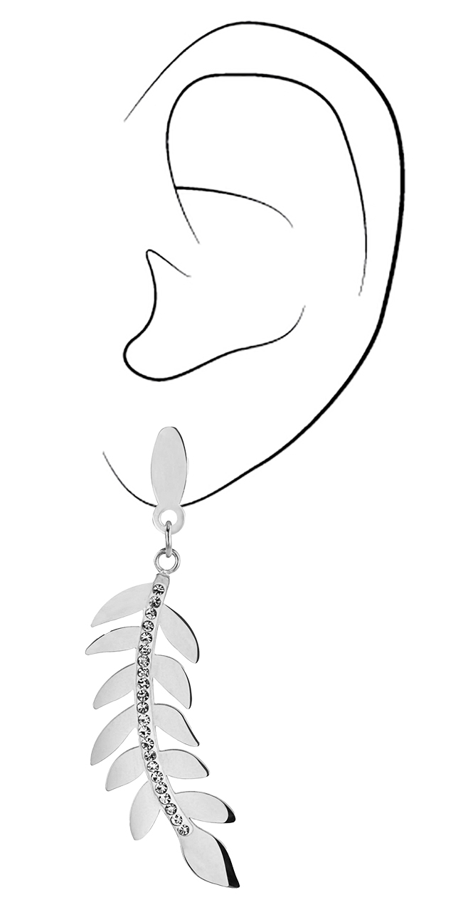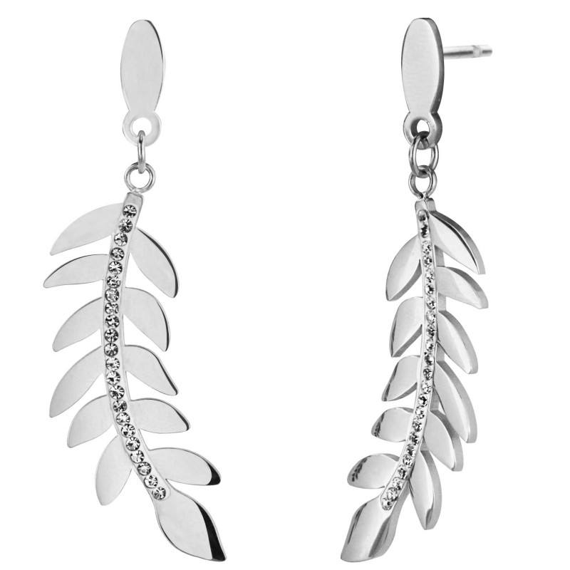 Traveller Oorhangers - Zilverkleurig - Edelstaal - Kristallen - Blaadjes - 55x15 mm