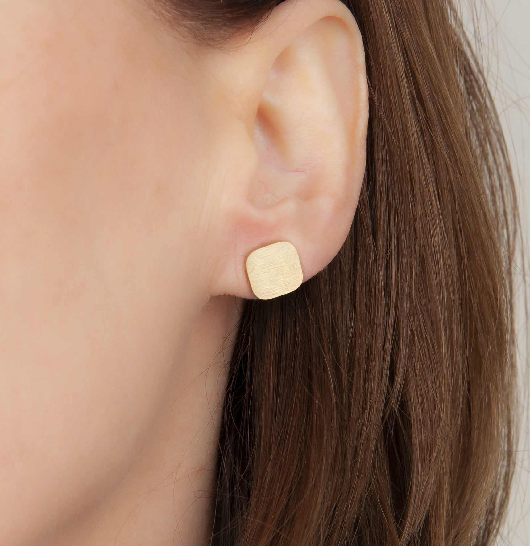 Traveller Oorstekers - Verguld - Edelstaal - Vierkant - Matte Afwerking - 10x10 mm