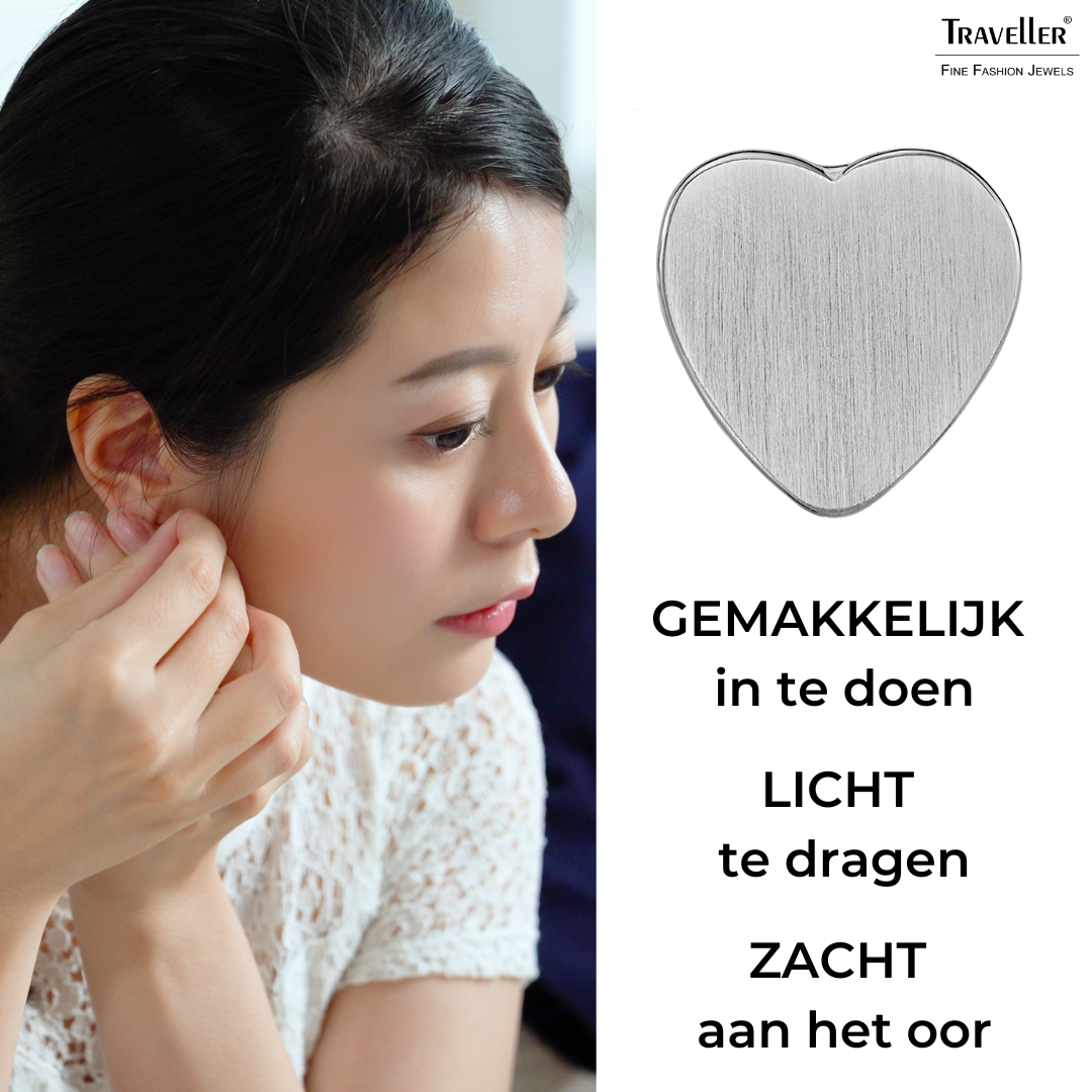 Traveller Oorstekers - Zilverkleurig - Hart - Edelstaal - 9 x 9 mm