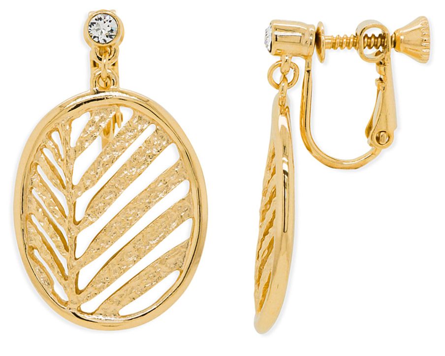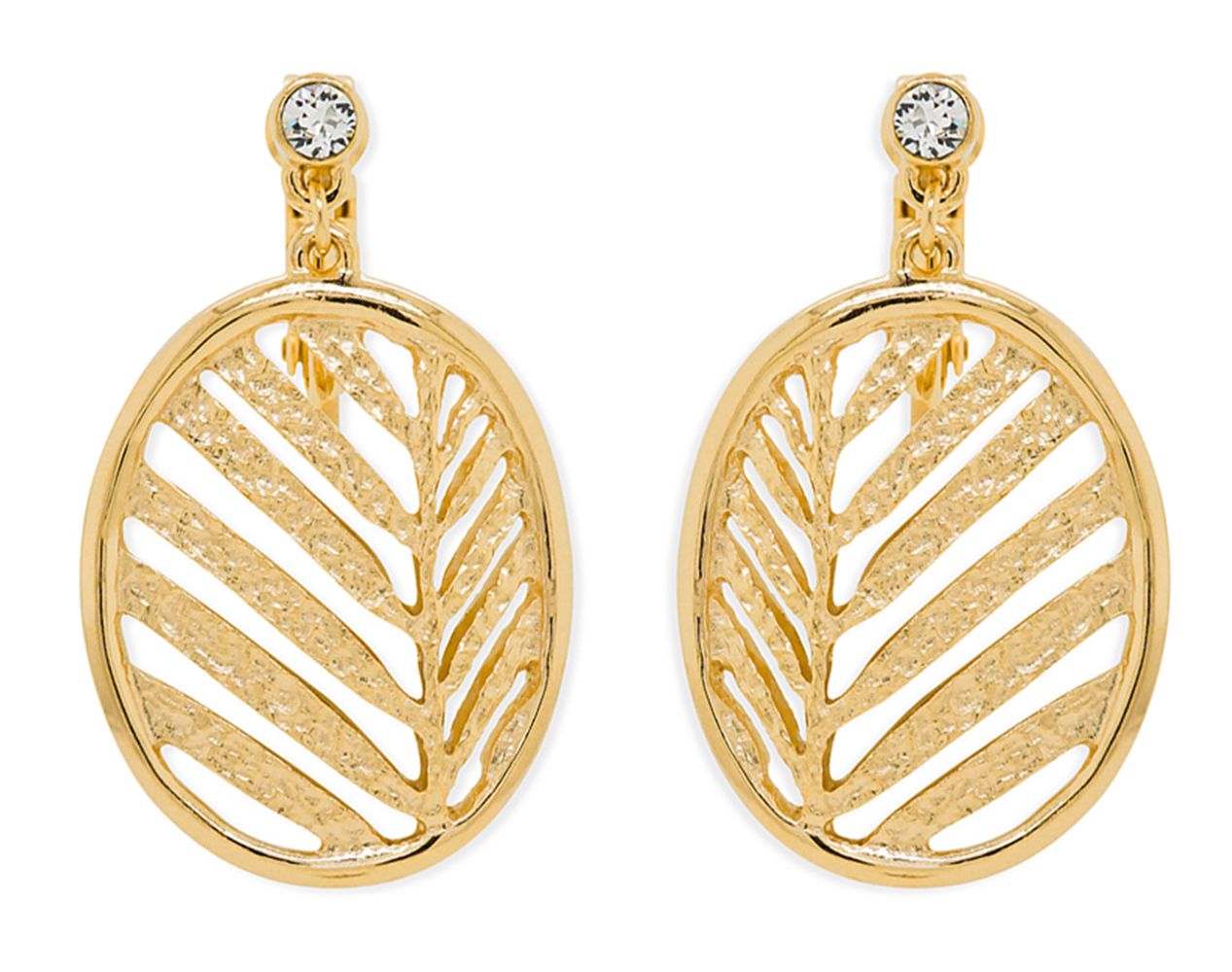 Grossé Oorclips - Foglia - Goudkleurig - Kristallen - Verguld - Blad - 32x20 mm