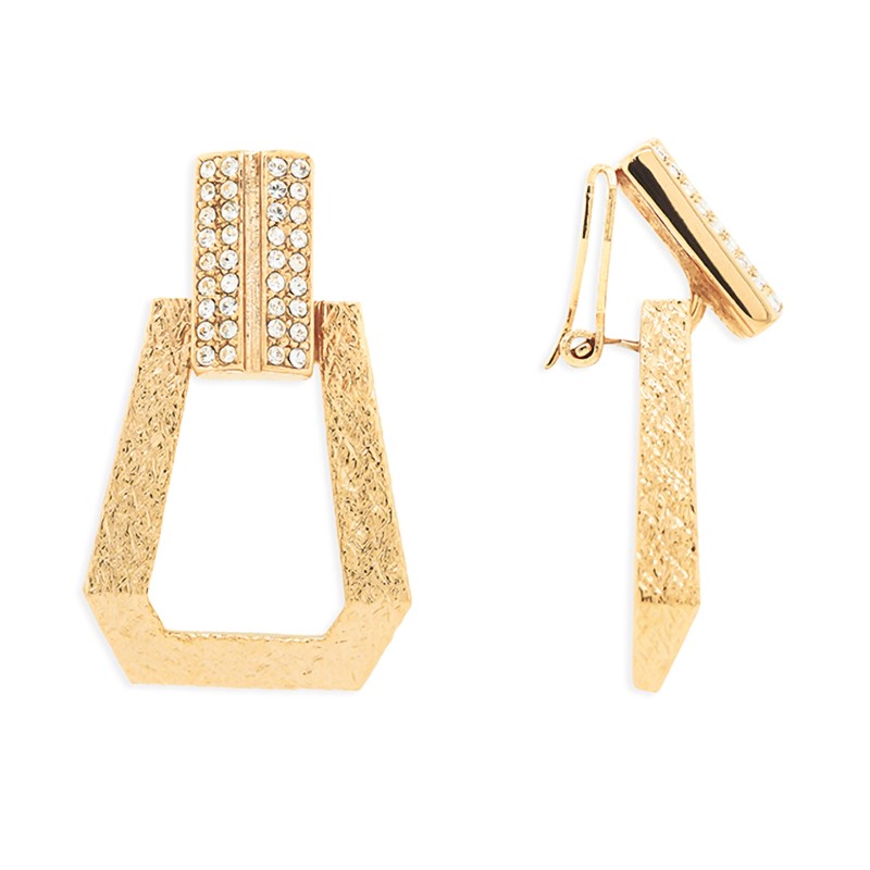 Grossé Oorclips - Hangend - Goudkleurig - Kristal - 30x20 mm - Verguld