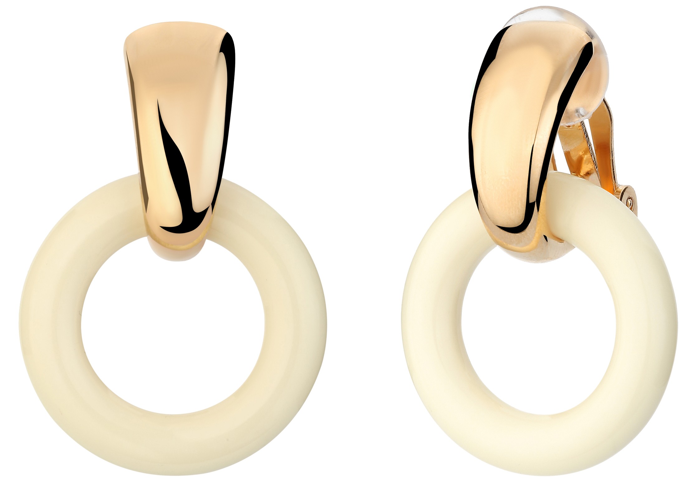 Uniek, klassiek met een stijlvolle touch. Deze oorclips van Traveller bestaan uit 22ct vergulde clips (kernmateriaal metaal) waaraan een crèmekleurige ring, met een diameter van 25 millimeter, van kunsthars hangt. Per stuk wegen de oorbellen slechts 4,5 gram. Dankzij het unieke sluitingssysteem van Traveller zijn deze oorclips zeer comfortabel, licht en veilig om te dragen.