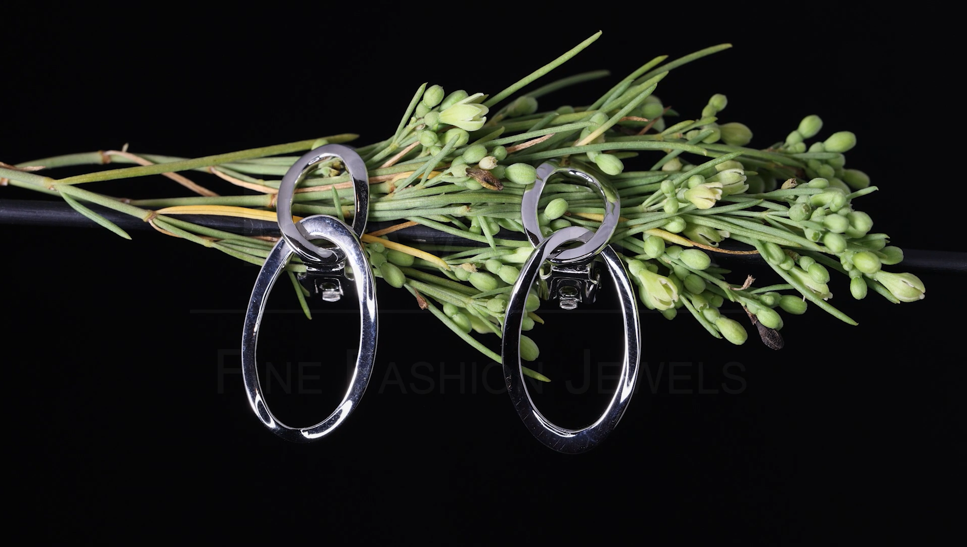 Traveller Clip Oorbellen - Hangers - Geplatineerd - Dubbel Ovaal - Zilverkleurig - 33 x 13 mm