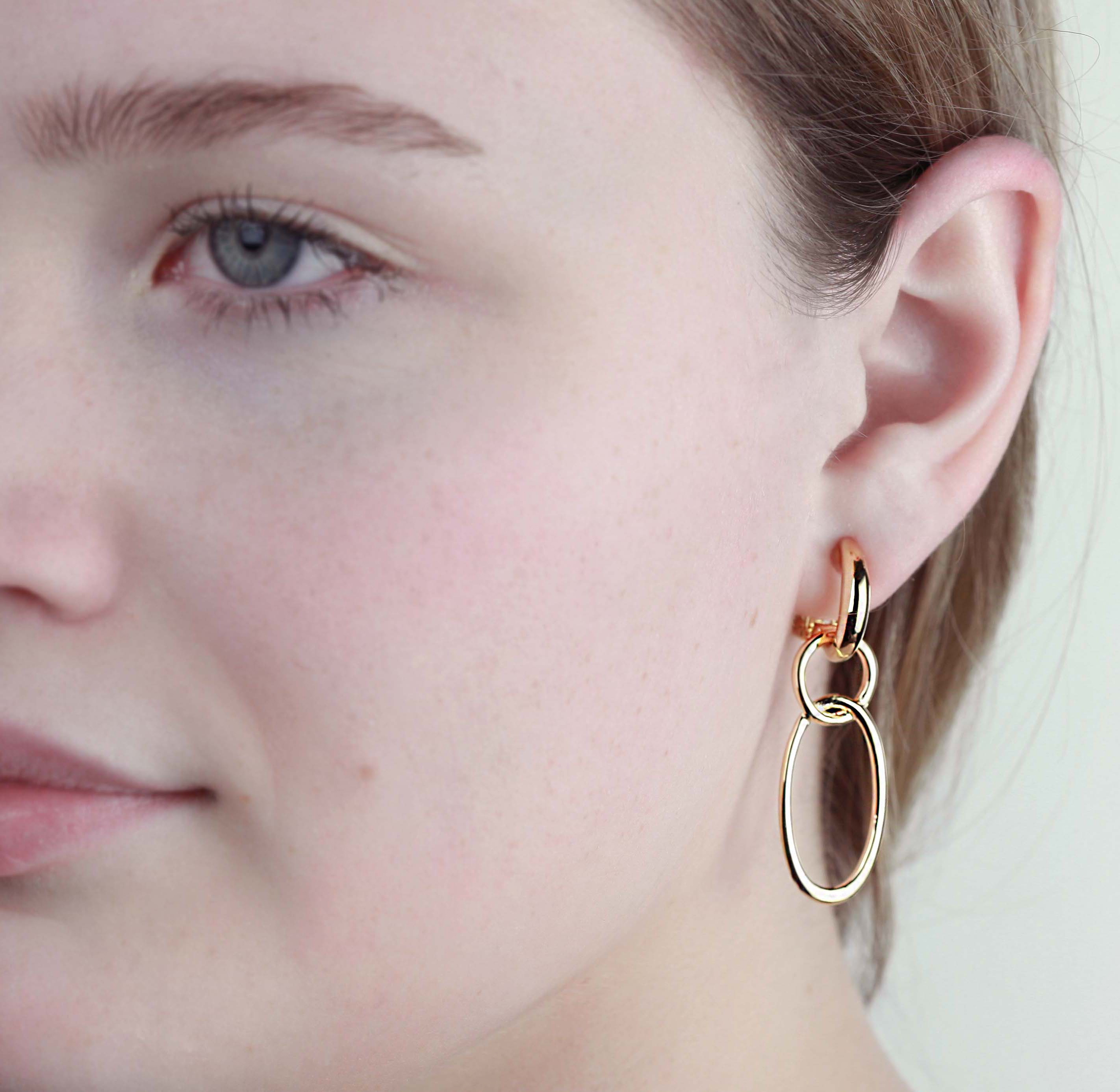 Traveller Clip Oorbellen - Hangers - Goudkleurig - Schakels / Ringen - Verguld - 45x15 mm