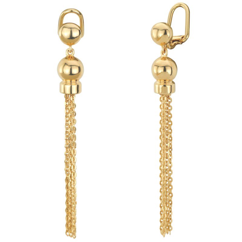 Chique, strak, speels. Deze glanzende oorbellen van Traveller hebben een eenvoudig. tijdloos ontwerp waarbij de hanger zorgt voor een vrolijk effect. De oorbellen zijn 6 centimeter lang, 0,8 centimeter breed en wegen per stuk zo'n 3,5 gram. De oorclips zijn verguld met 22 karaat goud.