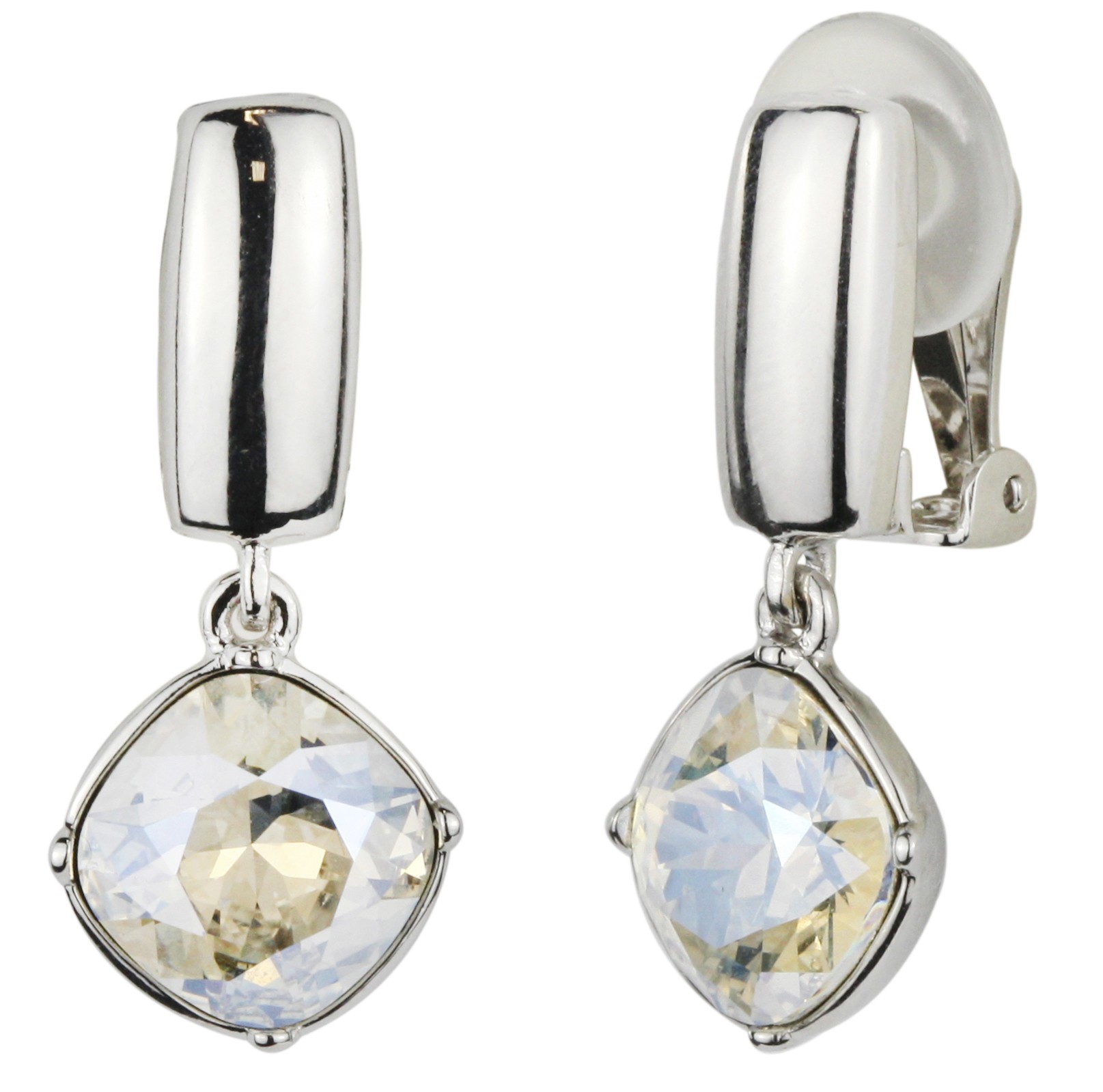 Traveller Clip Oorbellen - Hangers - Zilverkleurig - Kristallen - 13 mm - Geplatineerd - 30x13 mm