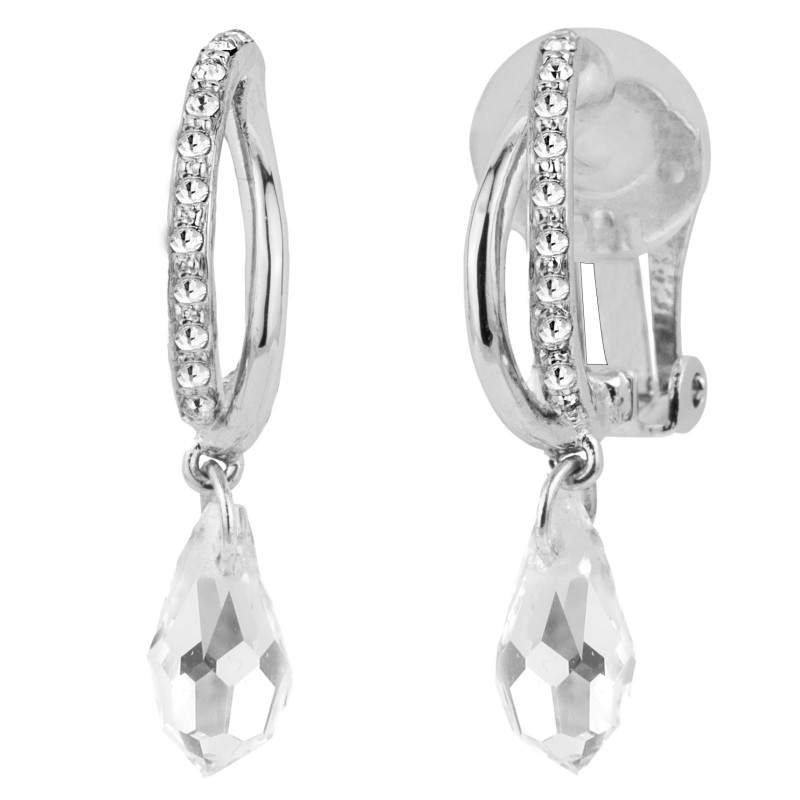 Traveller Clip Oorbellen - Hangers - Zilverkleurig - Kristallen - Druppelvorm - Geplatineerd - 30x5mm
