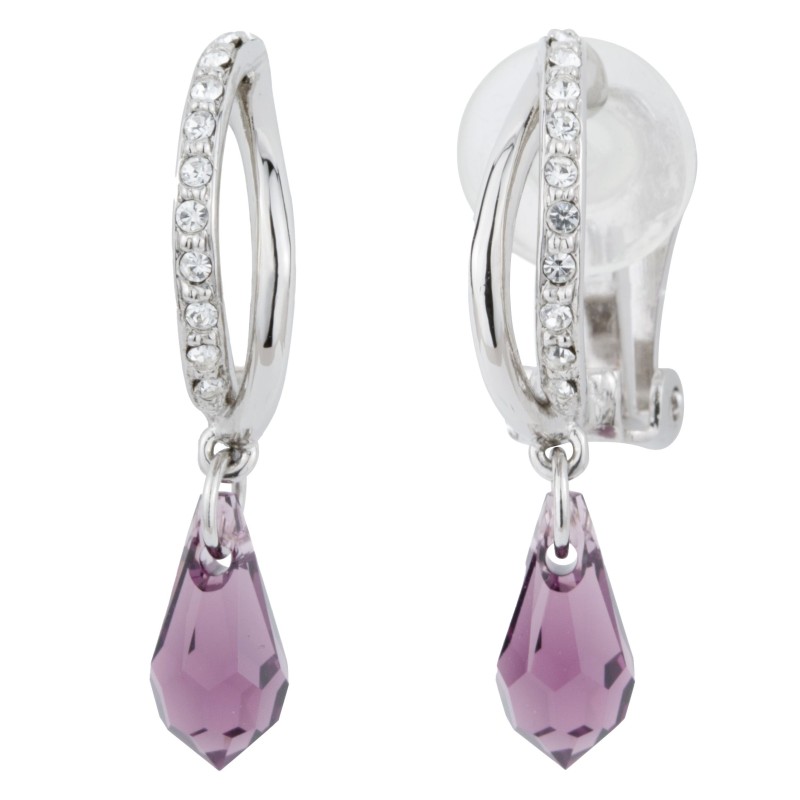 Traveller Clip Oorbellen - Hangers - Zilverkleurig - Kristallen - Druppelvorm - Paars - Geplatineerd - 30x5mm