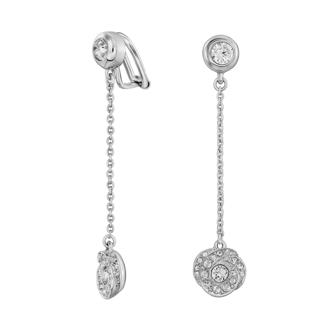 Traveller Clip Oorbellen - Hangers - Zilverkleurig - Kristallen - Geplatineerd - 50x10 mm