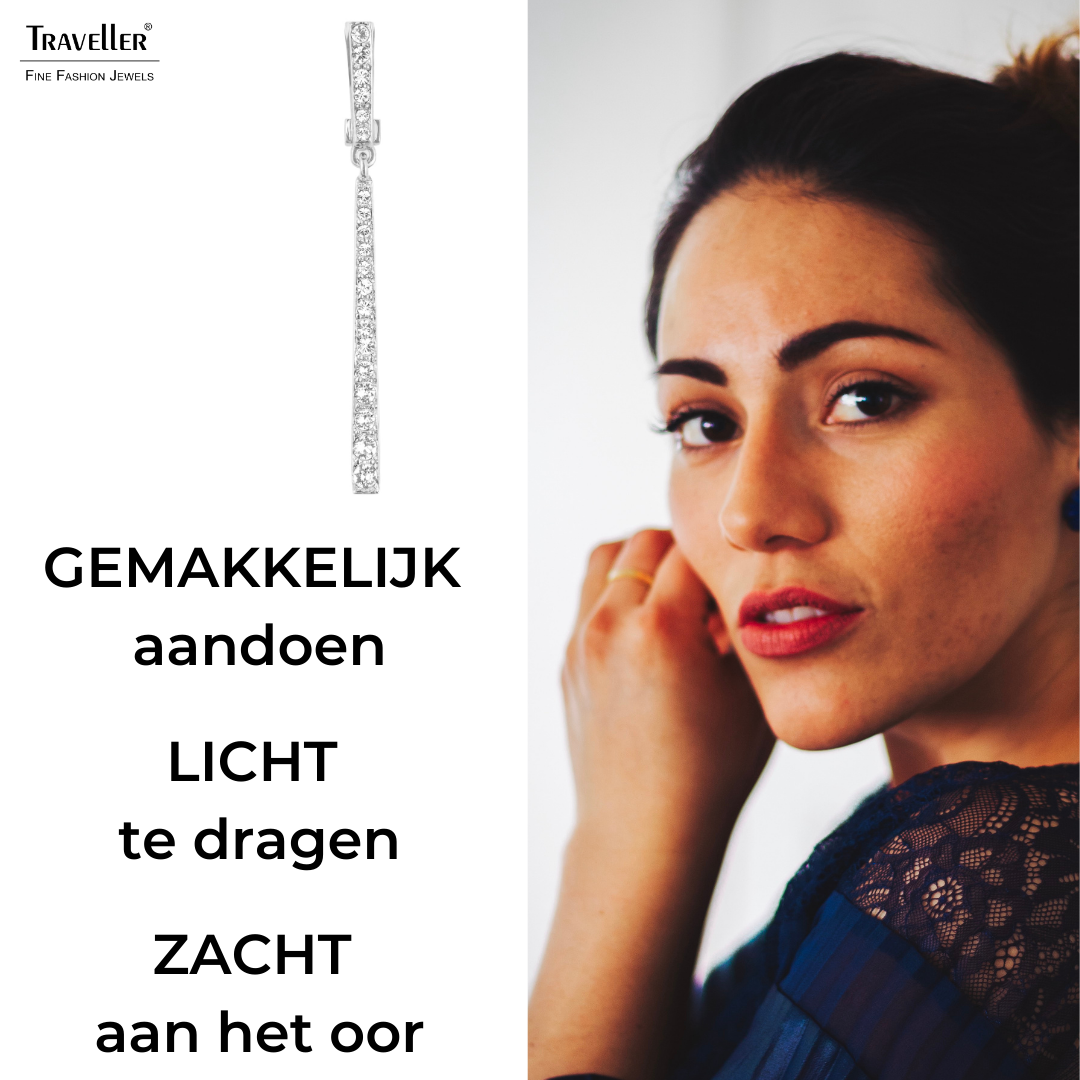 Schitteren, sprankelen en stralen doe je met deze oorclips van Traveller. De volledig geplatineerde oorbellen bestaan uit twee stukjes die beide bezaaid zijn met Preciosa kristallen. In totaal zijn de oorclips 5,5 cm lang, per stuk wegen ze 3 gram. Dankzij het unieke sluitingssysteem van Traveller zijn de clips comfortabel, licht en veilig om te dragen. De oorbellen zijn verpakt in een geschenkverpakking van milieugecertificeerd materiaal.