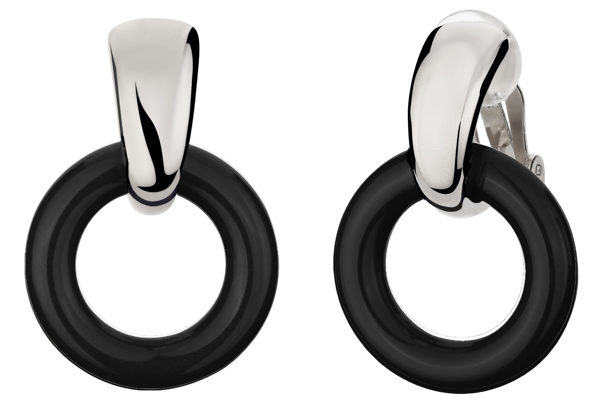 Klassiek met een stijlvolle, zwarte touch. Deze oorbellen van Traveller bestaan uit gerhodineerde oorclips waaraan een zwarte ring, met een diameter van 2,5 centimeter, van kunsthars hangt. De oorbellen wegen per stuk 4,5 gram. Deze oorclips zijn verpakt in een geschenkverpakking van milieugecertificeerd materiaal!