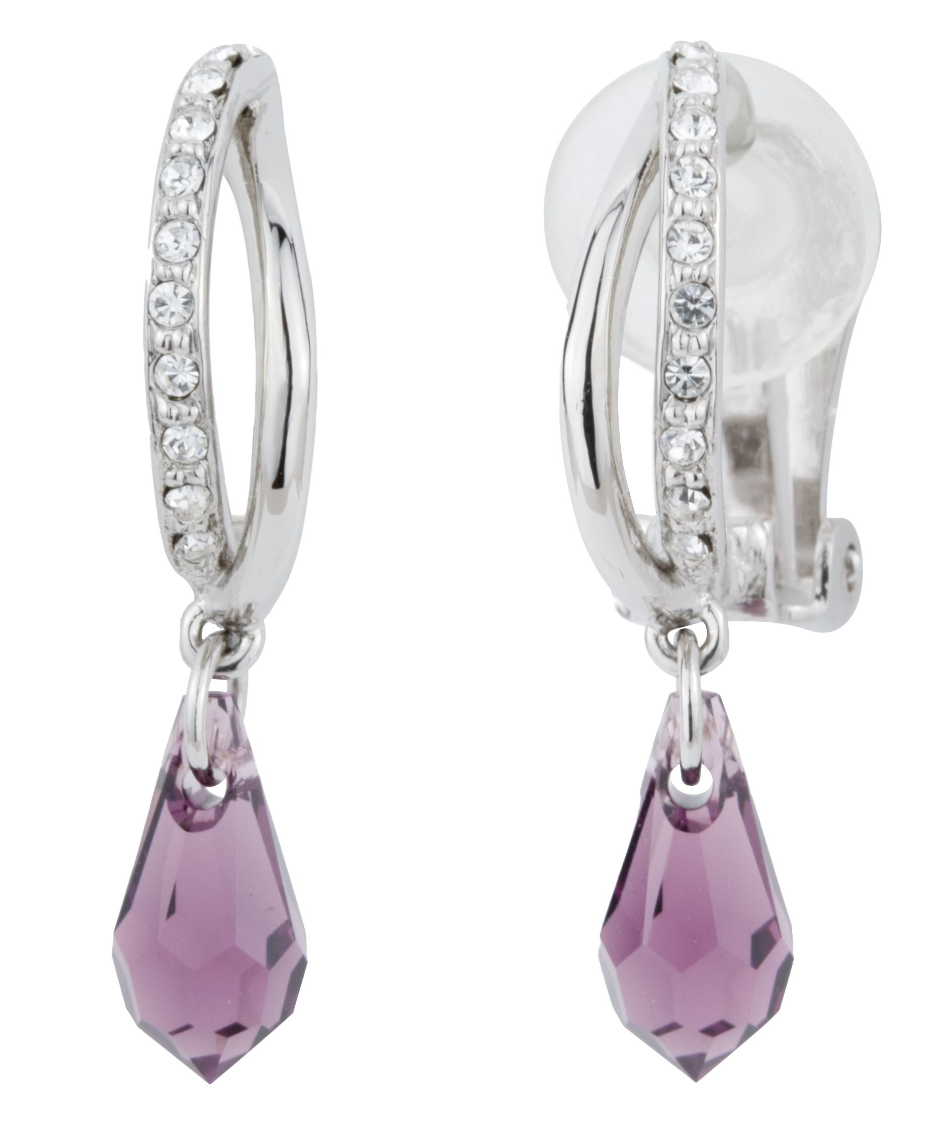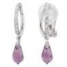 Traveller Oorbellen zonder Gaatjes - Hangers - Zilverkleurig - Kristallen - Druppelvorm - Paars - Geplatineerd - 30x5mm
