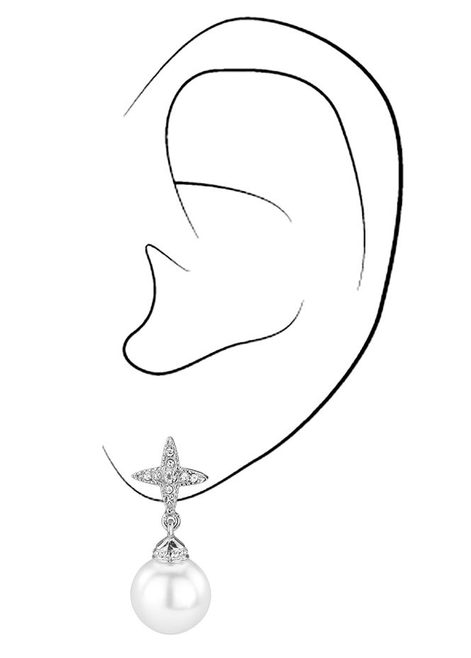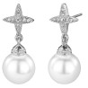 Traveller Oorhanger - Zilverkleurig - Kruis - Parels - Wit - 10 mm - Kristallen - Geplatineerd - 25mm