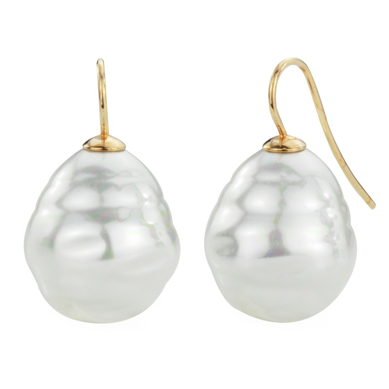 Traveller Oorhangers - 22kt Verguld - Barokparels - 20x17 mm - Wit - 22kt - 31 mm