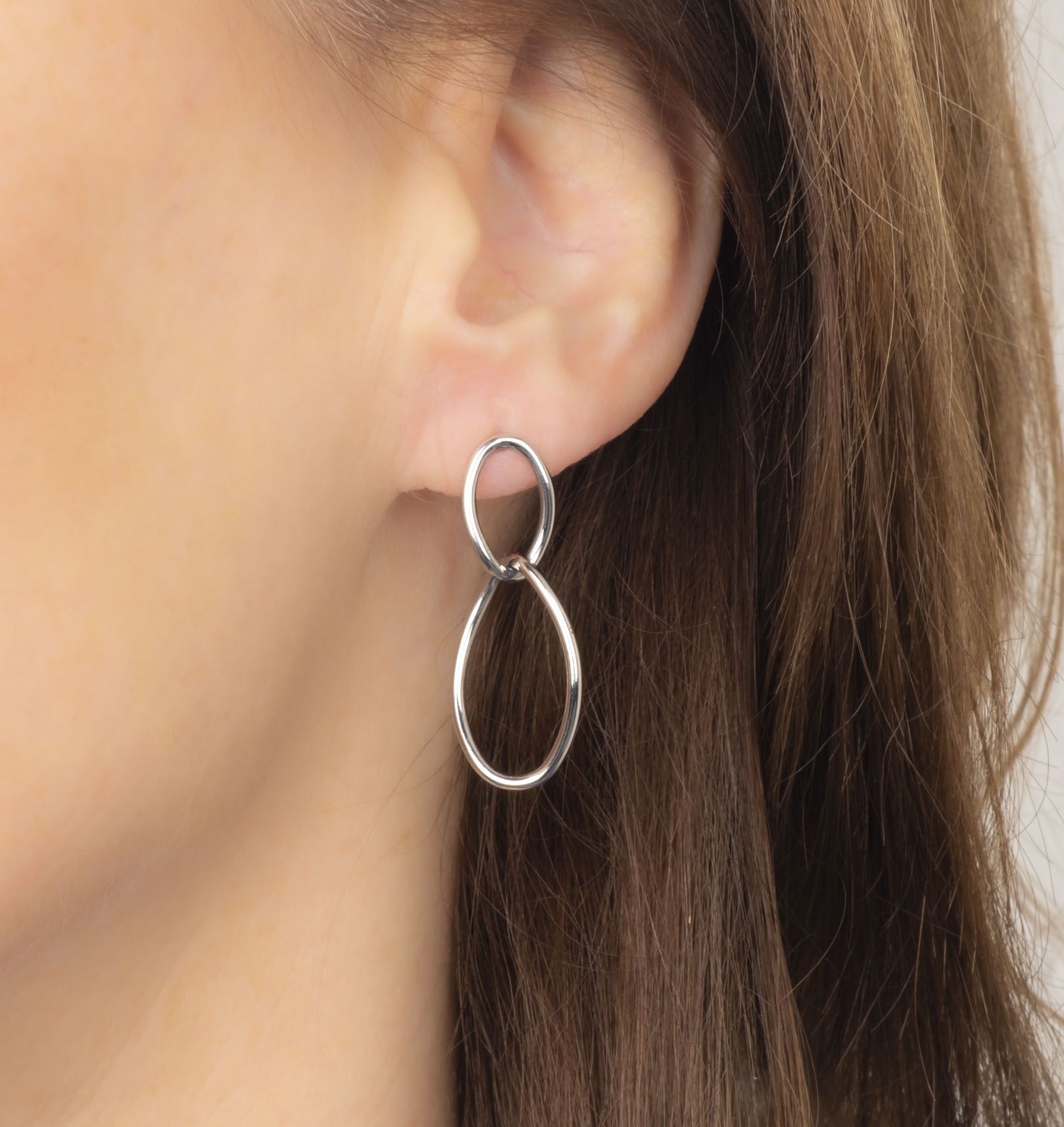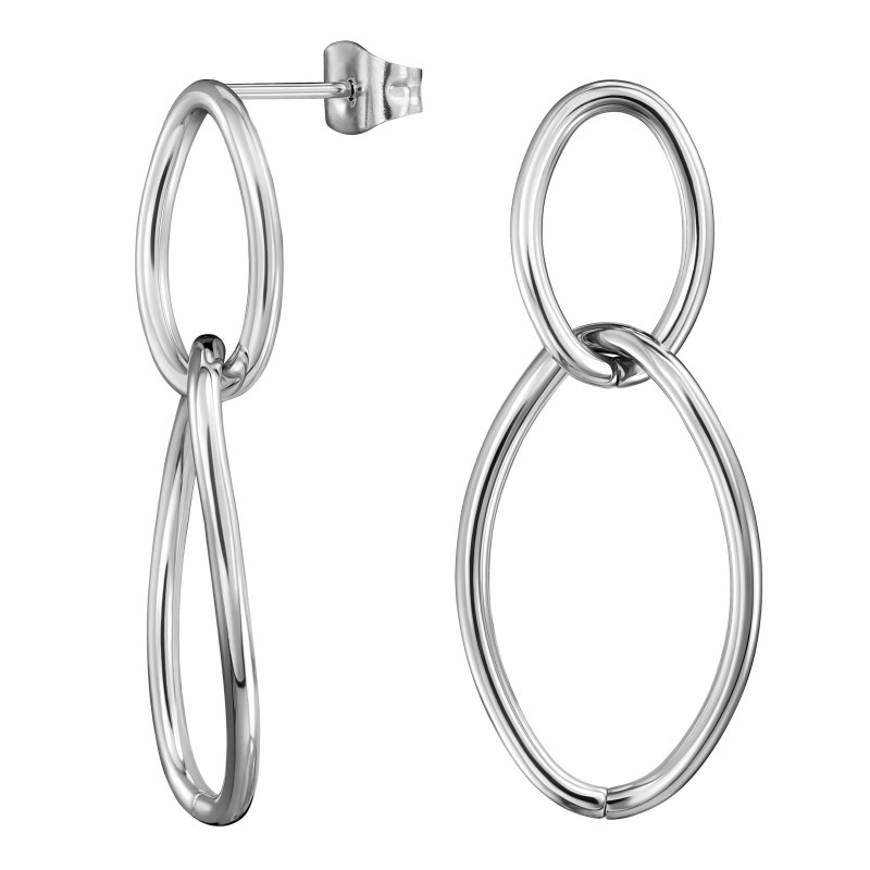 Deze minimalistische oorbellen van Traveller zijn stijlvol en tijdloos. De oorbellen bestaan uit twee ringen die in elkaar hangen. Doordat de oorbellen zijn gemaakt van edelstaal, blijven ze lang mooi zilverkleurig. Met een formaat van 35 x 15 millimeter vallen ze op, maar passen ze bij iedere outfit.