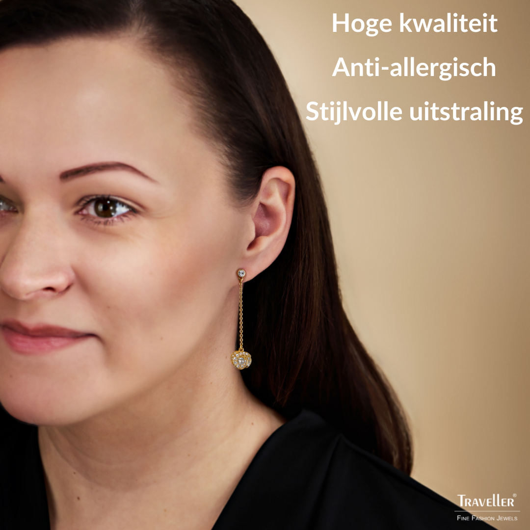 Traveller Oorhangers - Goudkleurig - Kristallen - Verguld - 45x10 mm