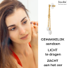 Deze oorhangers van Traveller zijn echte blikvangers door hun elegante en lange design. De 22 karaat vergulde oorbellen bestaan uit een prachtig glanzend kristal waaraan 2 kettinkjes hangen. Het ene kettinkje heeft in het midden een stralend kristal en aan het uiteinde een prachtige barok parel met een diameter van 8 millimeter, het andere kettinkje hangt hierachter en heeft aan het einde ook zo'n prachtige witte barok parel. Deze hoogwaardige imitatieparels zijn afkomstig van Mallorca - een eiland dat bekendstaat om zijn parels. De oorbellen zijn 55 millimeter lang, maar door hun lichte gewicht (1,6 gram per stuk) zijn ze aangenaam om te dragen. De stekers zijn gemaakt van antiallergisch titanium. Zo kan iedereen de oorbellen (ver)dragen!