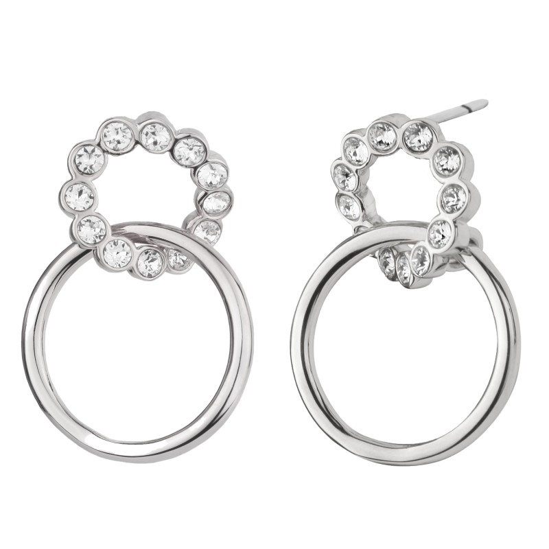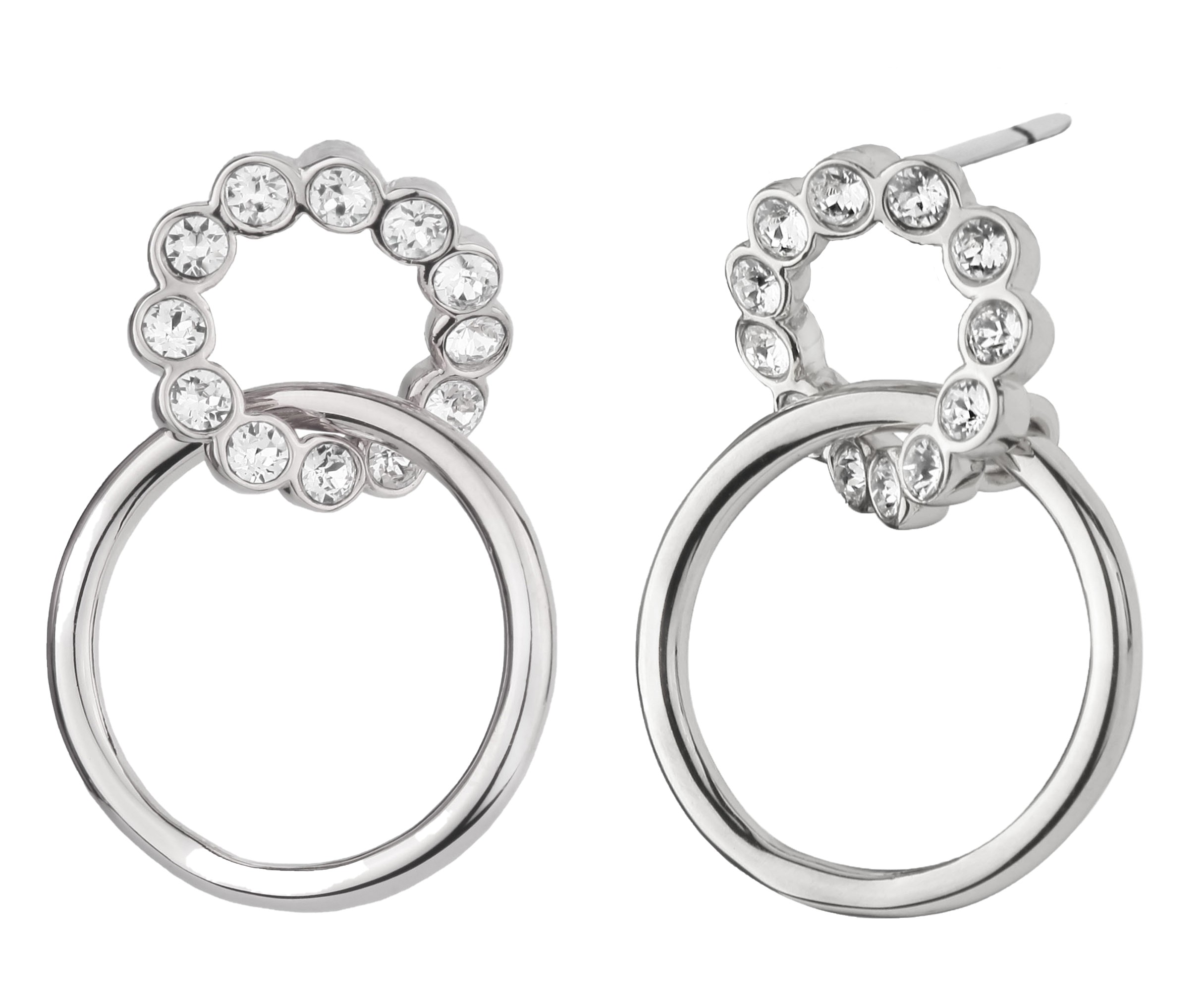 Dit unieke paar oorstekers van Traveller is sierlijk en vrolijk. De geplatineerde oorbellen bestaan uit twee ringen die in elkaar hangen. De bovenste is gevormd door Preciosa kristallen. De onderste is wat groter en hangt los in de andere. In totaal zijn de oorbellen 24 x 17 millimeter groot en ze wegen per stuk slechts 2 gram, waardoor ze aangenaam zijn om te dragen. Bovendien zijn de stekers gemaakt van antiallergisch titanium. Zo kan iedereen de oorbellen (ver)dragen!