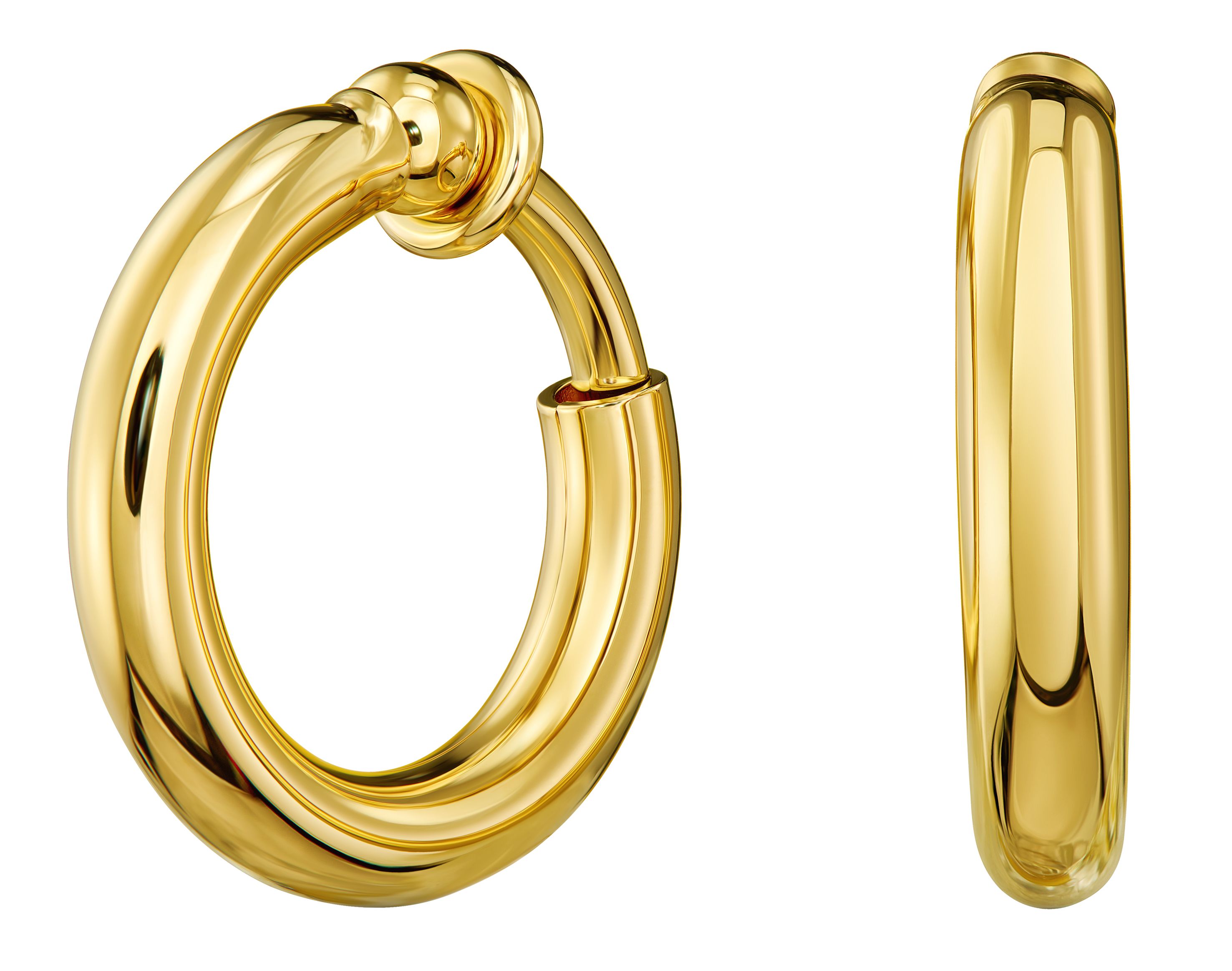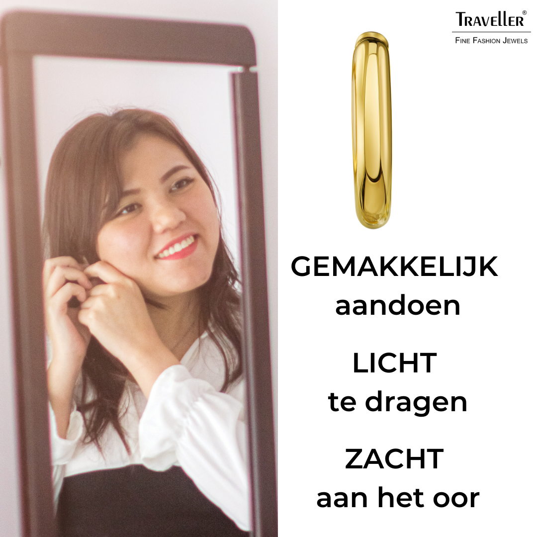 Als er één sieraad is dat tijdloos is, is het de oorring wel. Deze vergulde oorringen van Traveller zijn speciaal gemaakt voor iedereen die clips draagt. De oorbellen hebben een diameter van 18 millimeter, zijn 3 millimeter dik en wegen per stuk 2 gram.