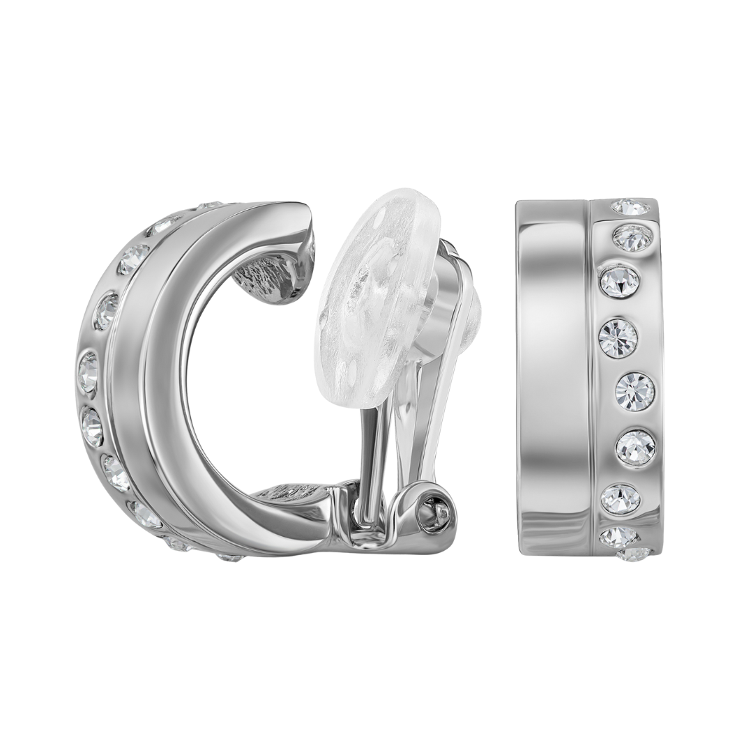 Traveller Clip Oorbellen - Oorringen - Zilverkleurig - Kristallen - Geplatineerd - 15x6mm
