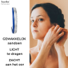 Wat een prachige oorringen van Traveller, de oorclips zijn uniek door hun speciale ontwerp. De geplatineerde oorclips bestaan uit 3 verschillende componenten, aan de buitenzijde een band ingelegd met met schitterende kristallen van Preciosa, in het midden een glanzende zilverkleurige band en aan de binnenzijde een band glimmend donker blauw emaille. De clip oorringen hebben een diameter van 23 millimeter, zijn 4 millimeter breed en wegen per stuk slecht 2,7 gram. Dankzij het unieke sluitingssysteem van Traveller zijn onze oorclips zeer comfortabel, licht en veilig om te dragen.