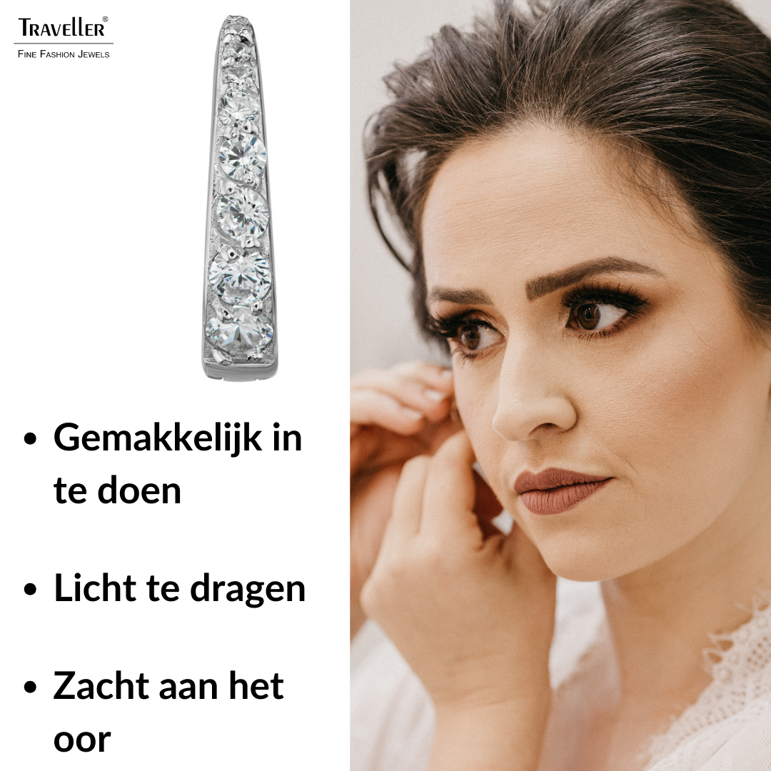 Traveller Oorringen - Edelstaal - Zirkonia - Zilverkleurig - Ø 14 mm