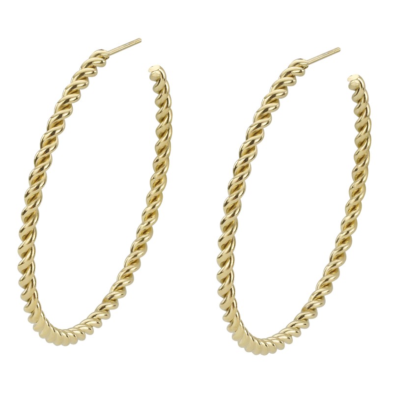 Deze oorringen van Traveller hebben een speels draaieffect. De goudkleurige oorbellen met een diameter van 50 millimeter zijn gemaakt van verguld edelstaal. De oorbellen wegen per stuk slechts 4 gram. Doordat de stekers gemaakt zijn van antiallergisch titanium, kan iedereen de oorringen (ver)dragen.