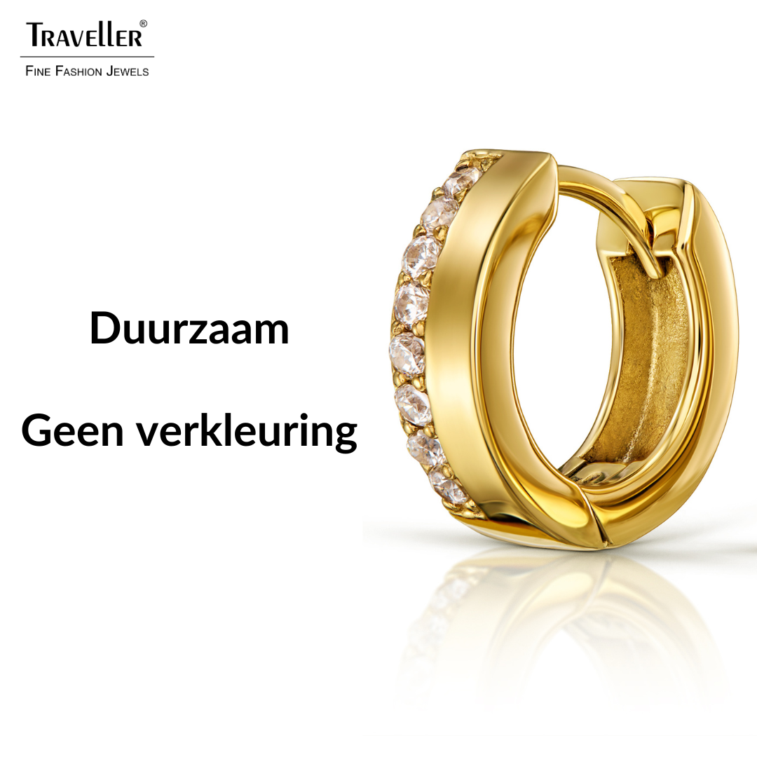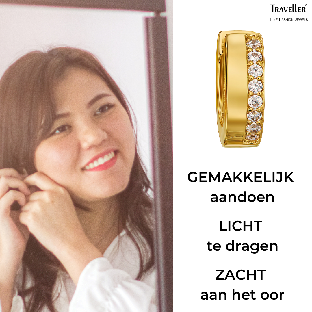 Traveller Oorringen - Verguld - Zirkonia - Ø 16 mm - Edelstaal