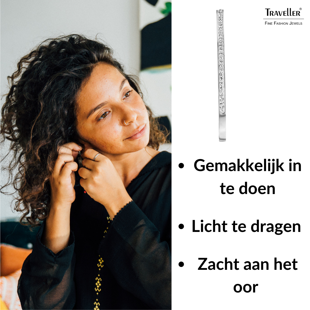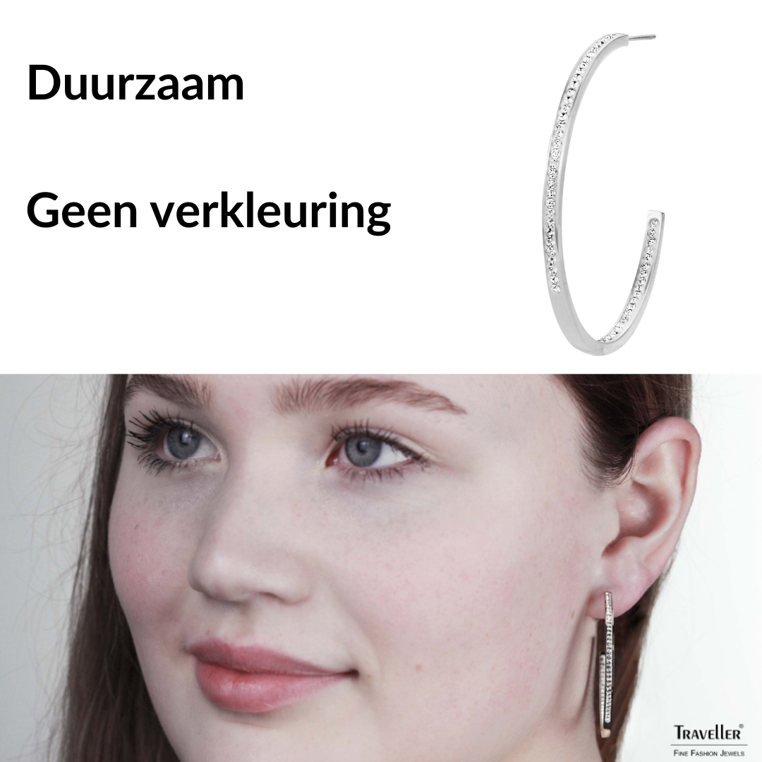 Traveller Oorringen - Zilverkleurig - Edelstaal - Preciosa Kristallen - 40 mm