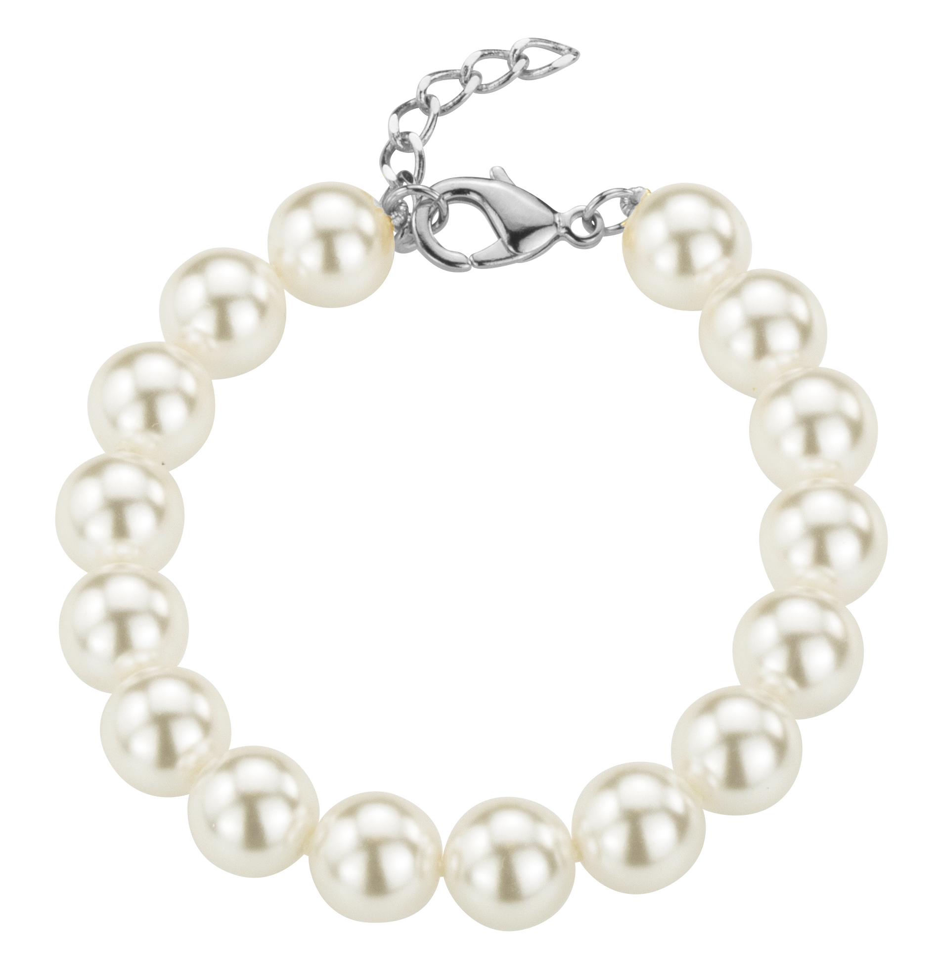 Traveller Parelarmband - Parels - Wit - 10 mm - Zilverkleurig - Geplatineerd - 18+3cm