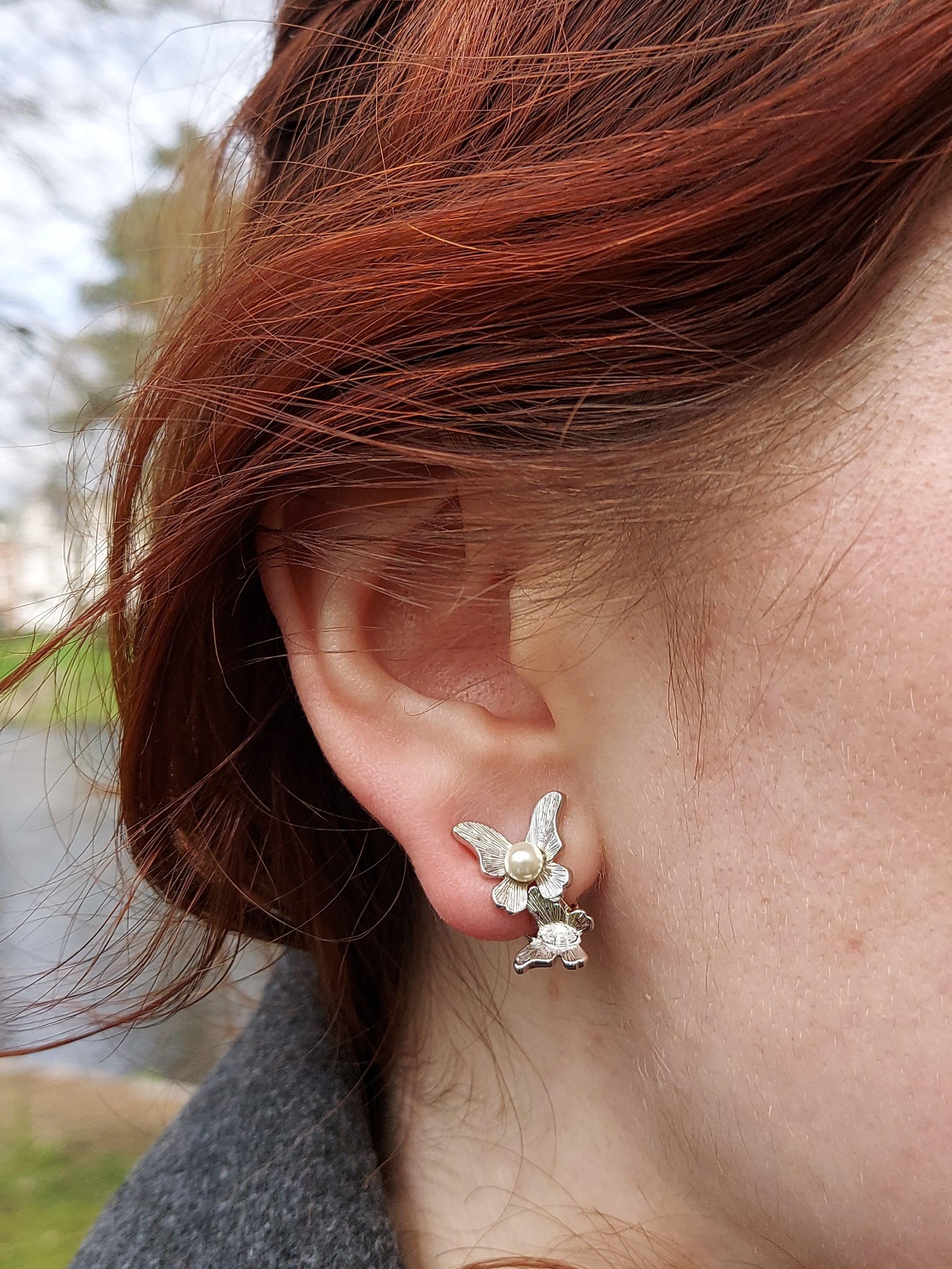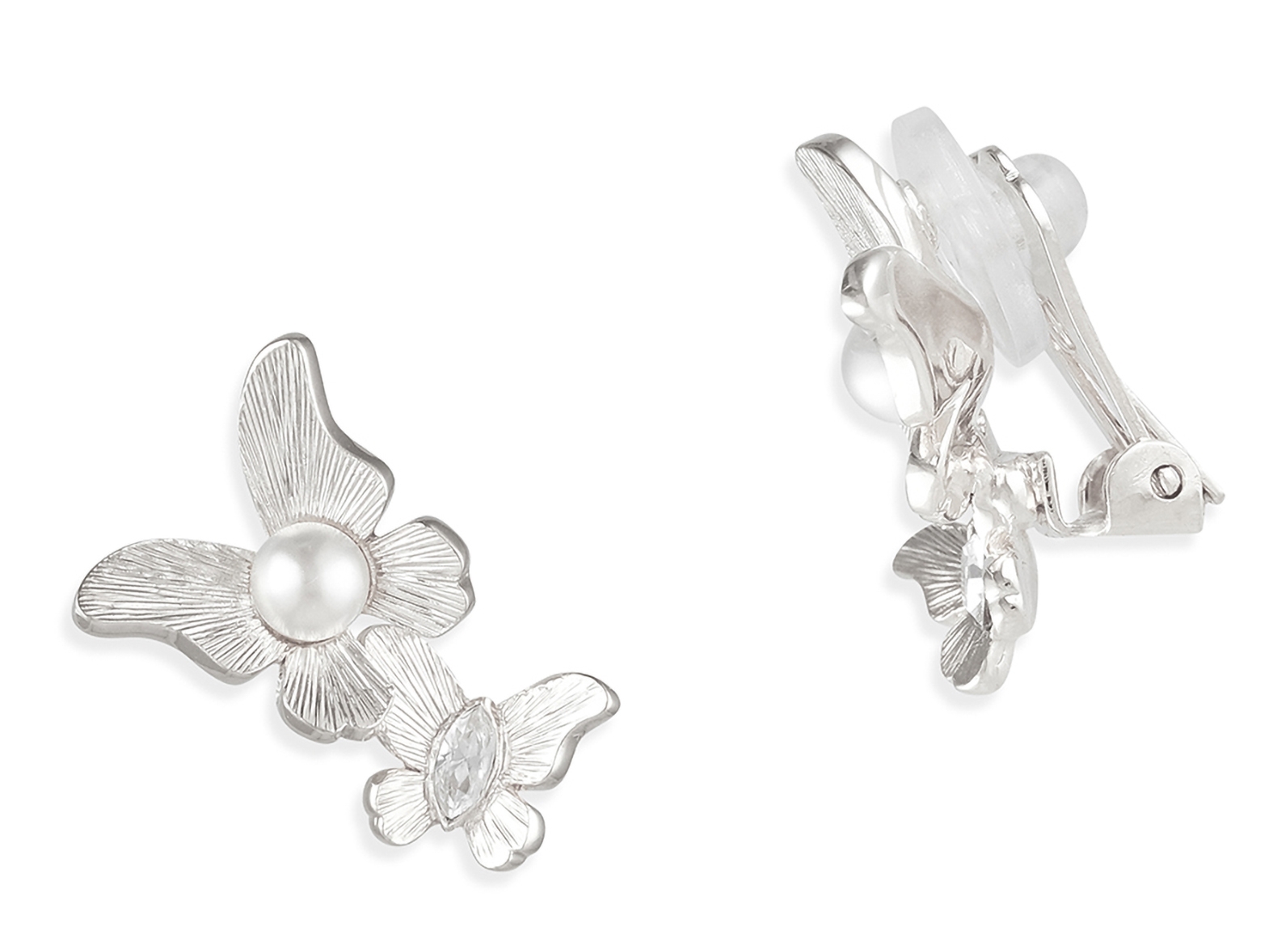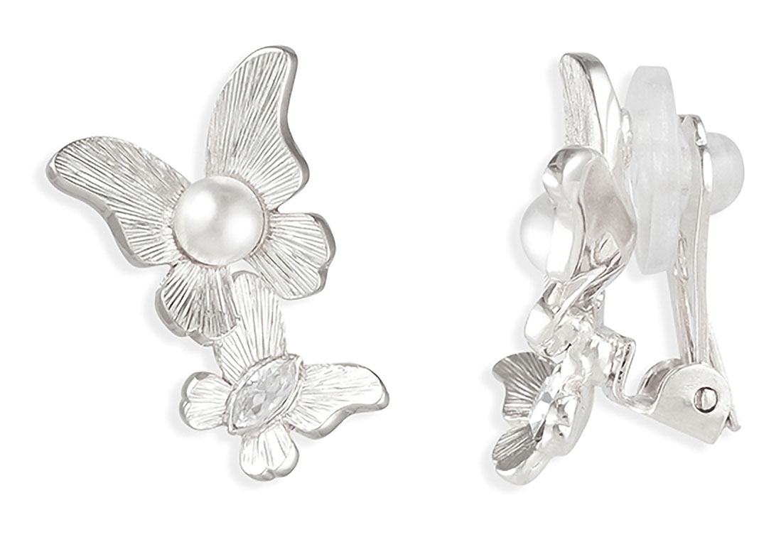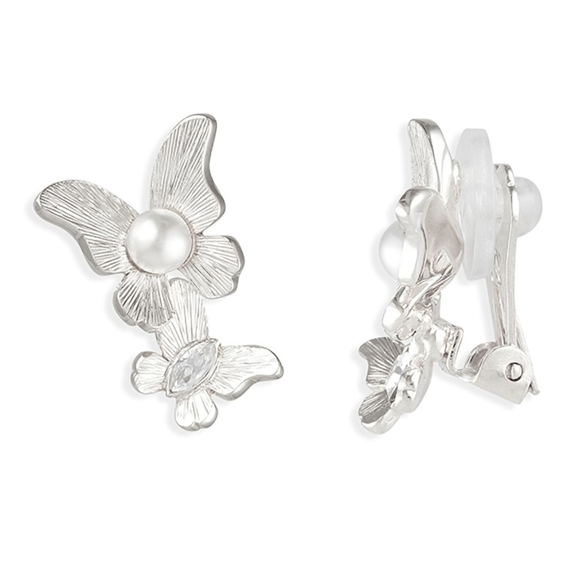 Grossé Oorclips - Vlinder - Zilverkleurig - Parel - Wit - Kristal - 18x13 mm - Geplatineerd