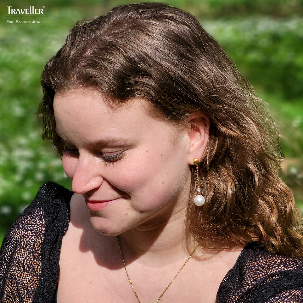 Deze klassieke oorbellen van Traveller combineren speelsheid met de natuurlijke elegantie van parels. De hoogwaardige imitatieparels (12 mm) van deze oorclips komen van Mallorca - een eiland dat bekendstaat om zijn parels. De fonkelende kristallen zijn van Preciosa. De met 22 karaat goud vergulde oorbellen zijn 53 x 12 mm groot. Dankzij het unieke sluitingssysteem van Traveller zijn deze oorclips zeer comfortabel, licht en veilig om te dragen.