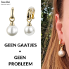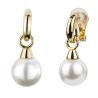 Traveller Clip Oorbellen - Hangers - Goudkleurig - Parels - 14 mm - Wit - Verguld - 35x14 mm