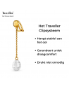 Deze klassieke oorbellen van Traveller combineren speelsheid met de natuurlijke elegantie van parels. De hoogwaardige imitatieparels (10 x 8 millimeter) van deze oorclips komen van Mallorca - een eiland dat bekend staat om zijn parels. De vergulde oorbellen zijn 50 x 8 millimeter groot. Dankzij het unieke sluitingssysteem van Traveller zijn deze oorclips zeer comfortabel, licht en veilig om te dragen.