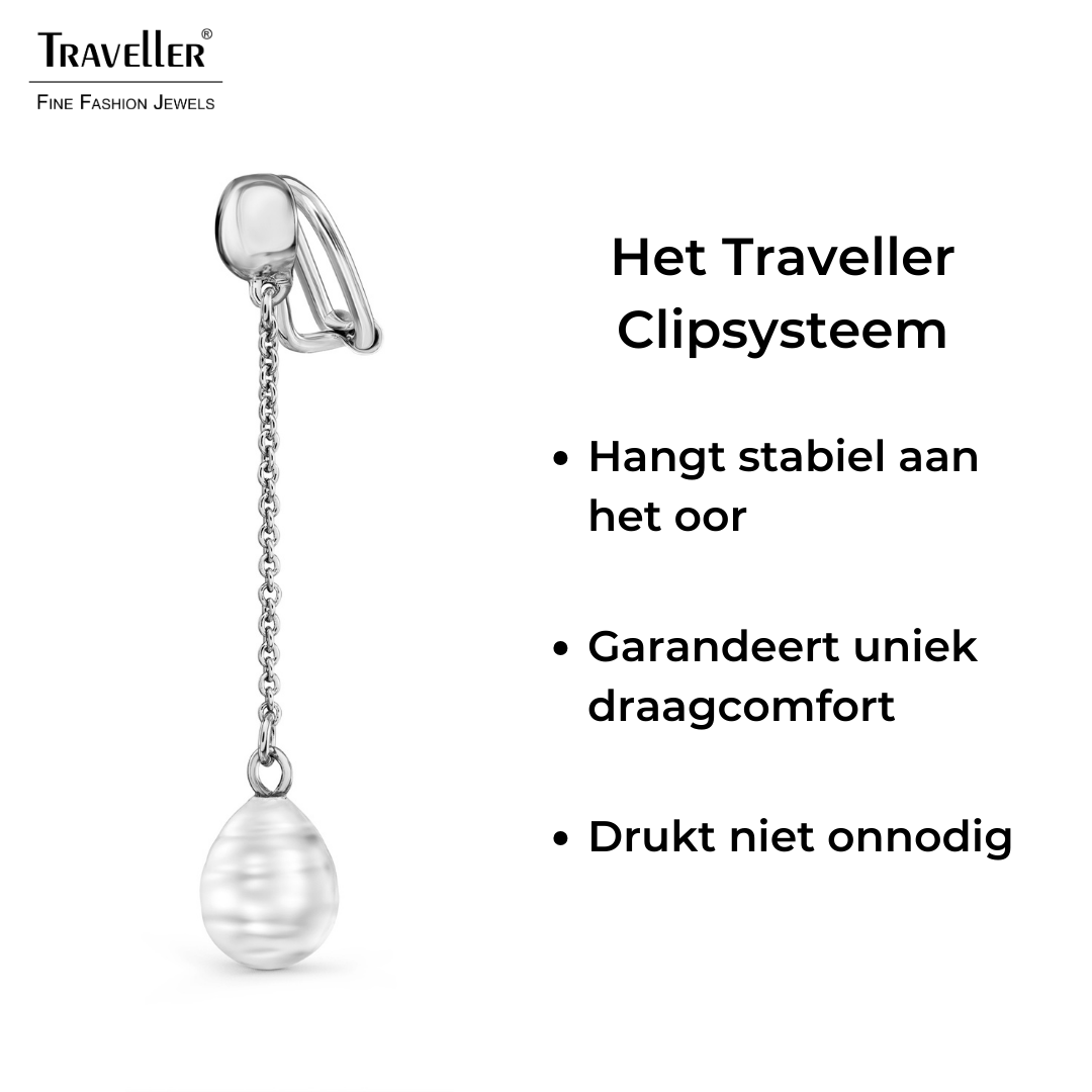 Deze klassieke oorbellen van Traveller combineren speelsheid met de natuurlijke elegantie van parels. De hoogwaardige imitatieparels (10 x 8 millimeter) van deze oorclips komen van Mallorca - een eiland dat bekend staat om zijn parels. De geplatineerde oorbellen zijn 50 x 8 millimeter groot. Dankzij het unieke sluitingssysteem van Traveller zijn deze oorclips zeer comfortabel, licht en veilig om te dragen.