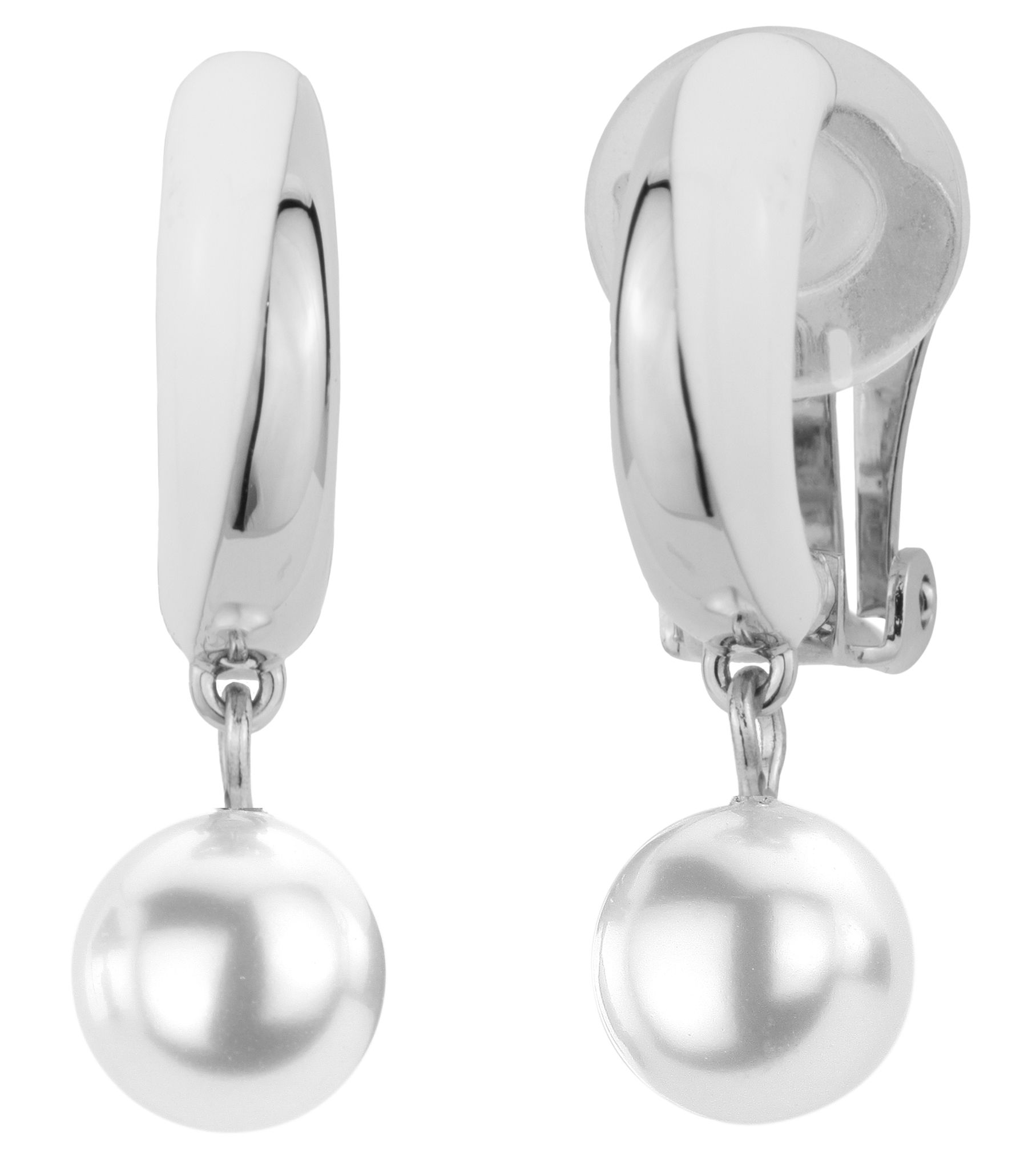 Traveller Clip Oorbellen - Hangers - Zilverkleurig - Parels - 8mm - Wit - Wit Emaille - Geplatineerd - 27x8 mm