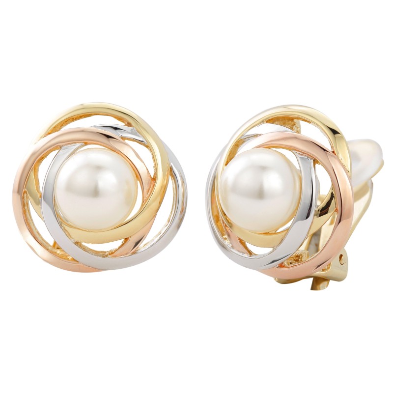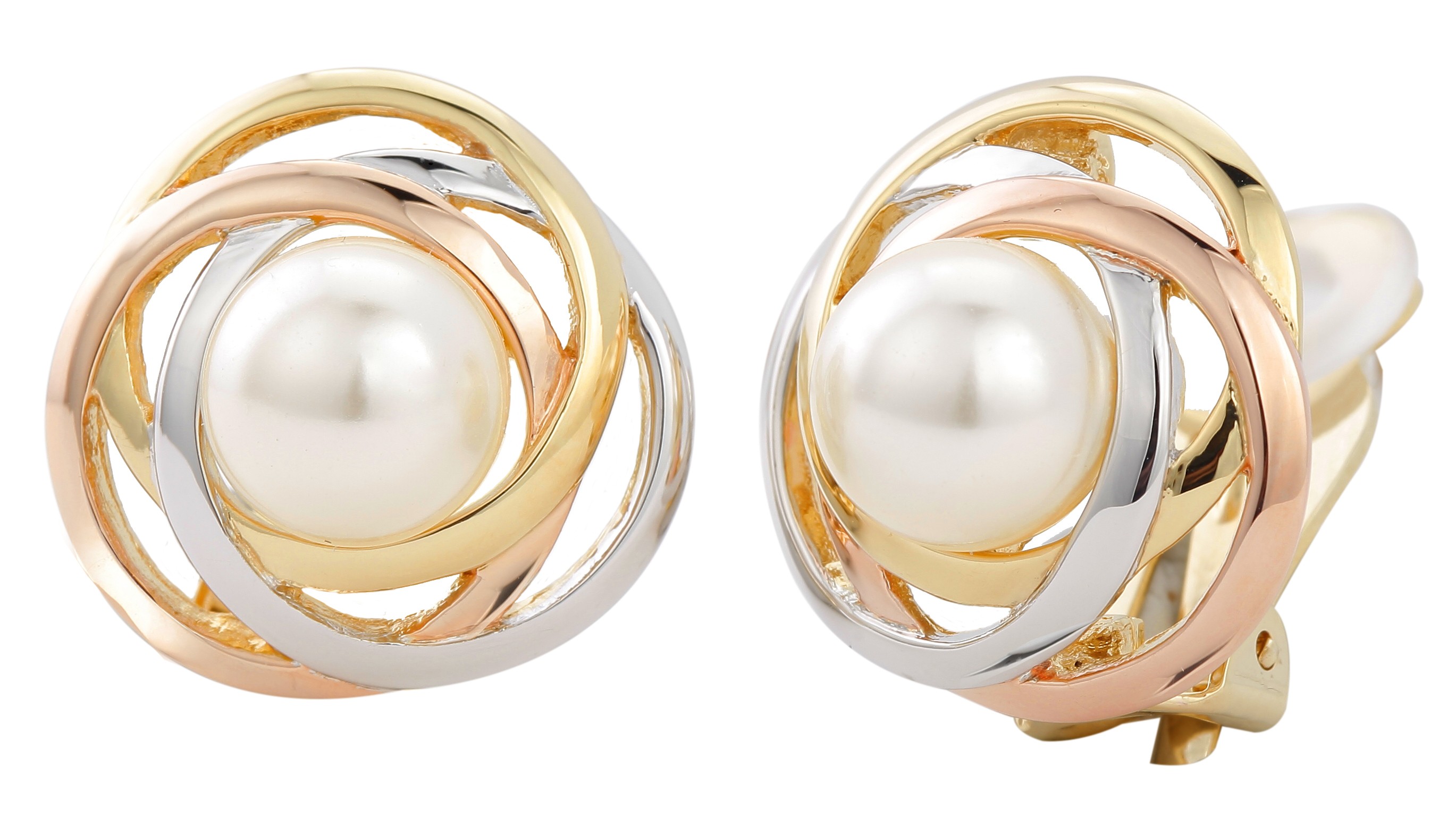 Traveller Clip Oorbellen - Parels - 10 mm - Wit - 22kt Verguld & Geplatineerd - Tricolor - 21 mm