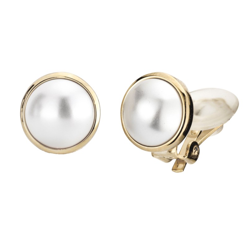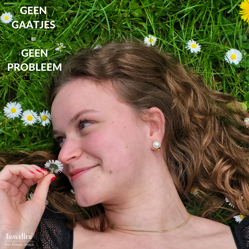 Traveller Clip Oorbellen - Parels - 10 mm - Wit - Goudkleurig - 22ct Verguld