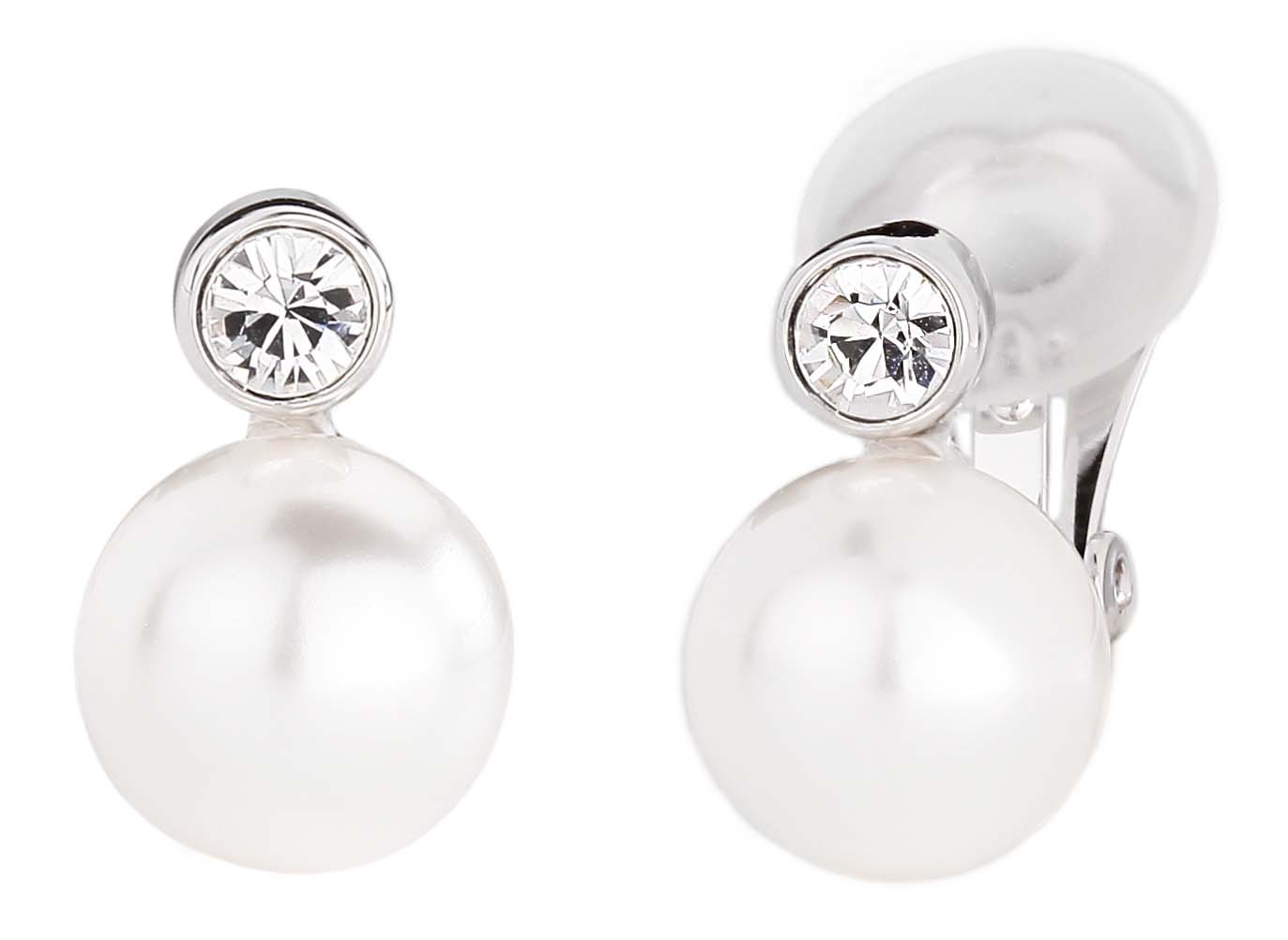 Traveller Clip Oorbellen - Parels - 10 mm - Wit - Preciosa Kristallen - Zilverkleurig - 15x10 mm
