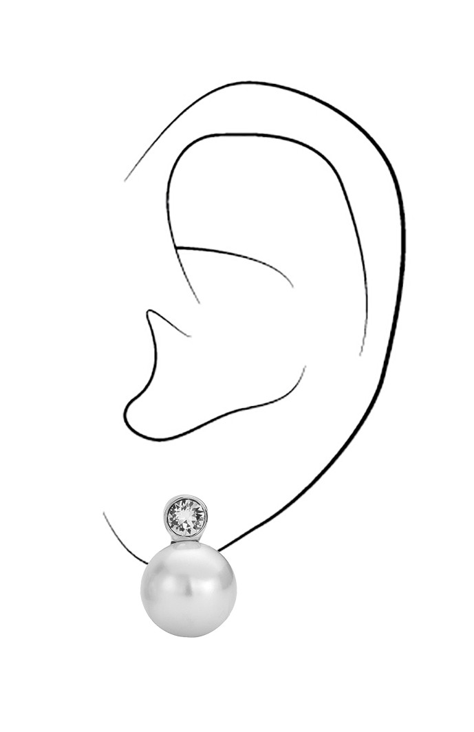 Traveller Clip Oorbellen - Parels - 12 mm - Wit - Preciosa Kristallen - Geplatineerd - Zilverkleurig - 15x12 mm