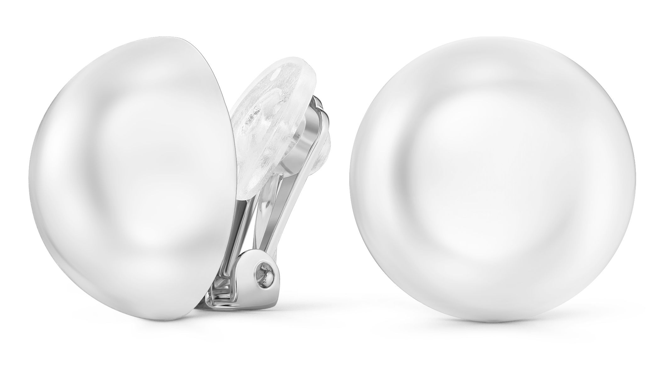 Traveller Clip Oorbellen - Parels - 16 mm - Wit - Geplatineerd - Zilverkleurig - Halve Parel