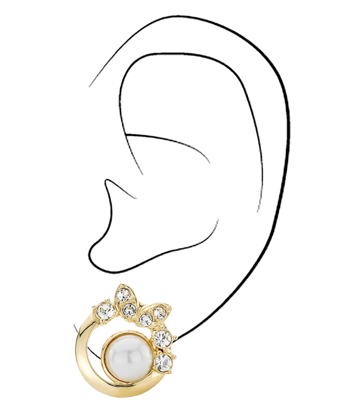 Traveller Clip Oorbellen - Verguld - Parels - 8mm - Wit - Kristallen - 20x20 mm
