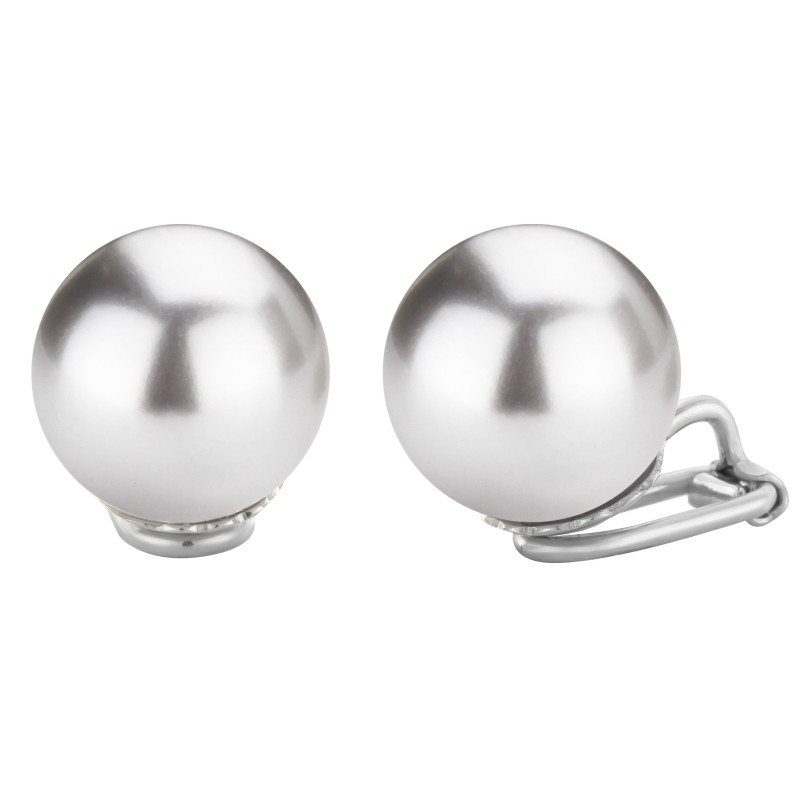 Traveller Clip Oorbellen - Zilverkleurig - Parels - 14 mm - Grijs - Geplatineerd