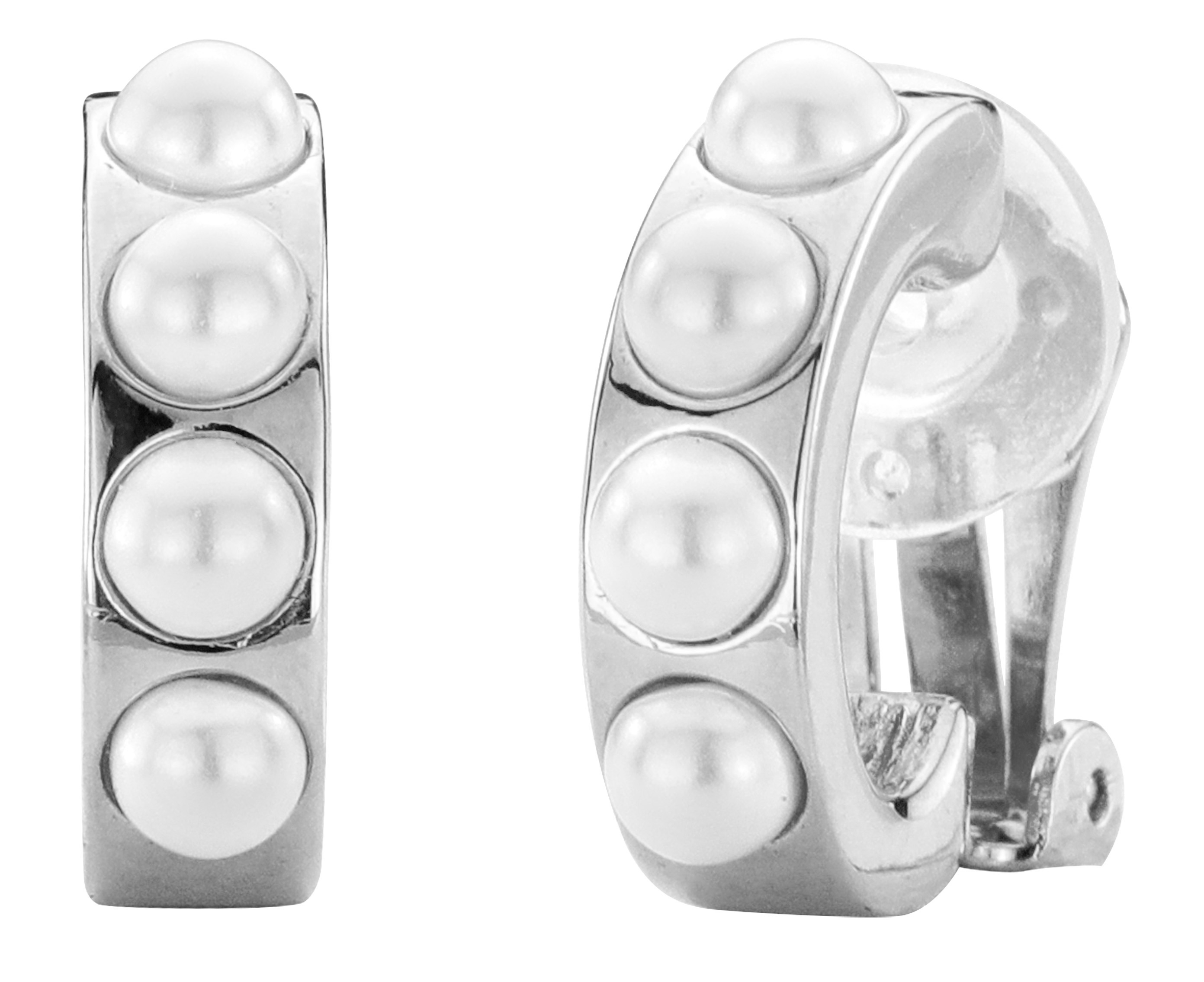Traveller Clip Oorbellen - Zilverkleurig - Parels - 4mm - Wit - Geplatineerd - 17x5 mm
