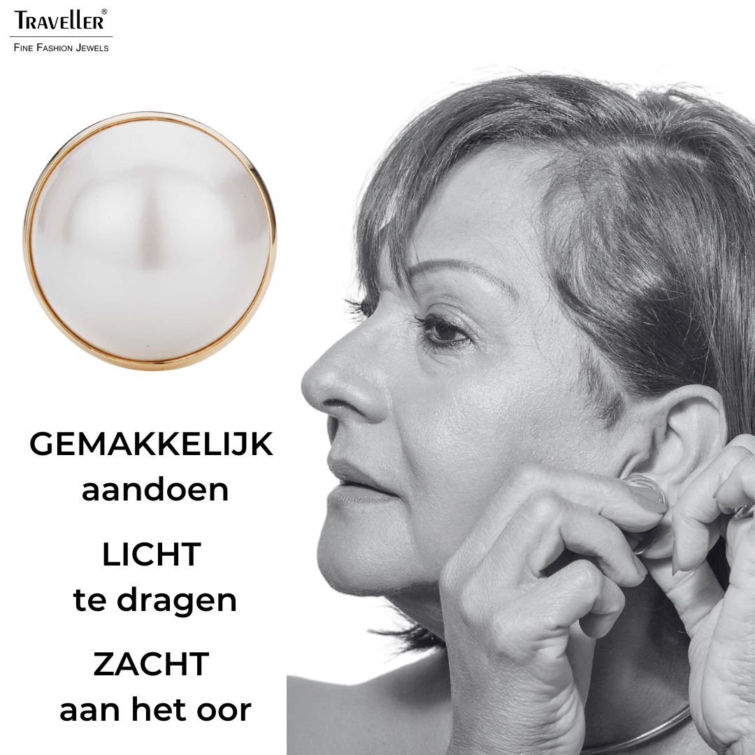 De klassieke pareloorbel met een twist: deze grote pareloorclips van Traveller hebben een goudkleurige rand. Een strak design met een goud randje. De grote witte parels van deze oorbellen komen uit Mallorca - een eiland dat bekend staat om zijn parels. De met 22 karaat goud vergulde oorbellen hebben een diameter van 20 millimeter en wegen per stuk 8,5 gram. Dankzij het unieke sluitingssysteem van Traveller zijn deze oorclips zeer comfortabel, licht en veilig om te dragen.