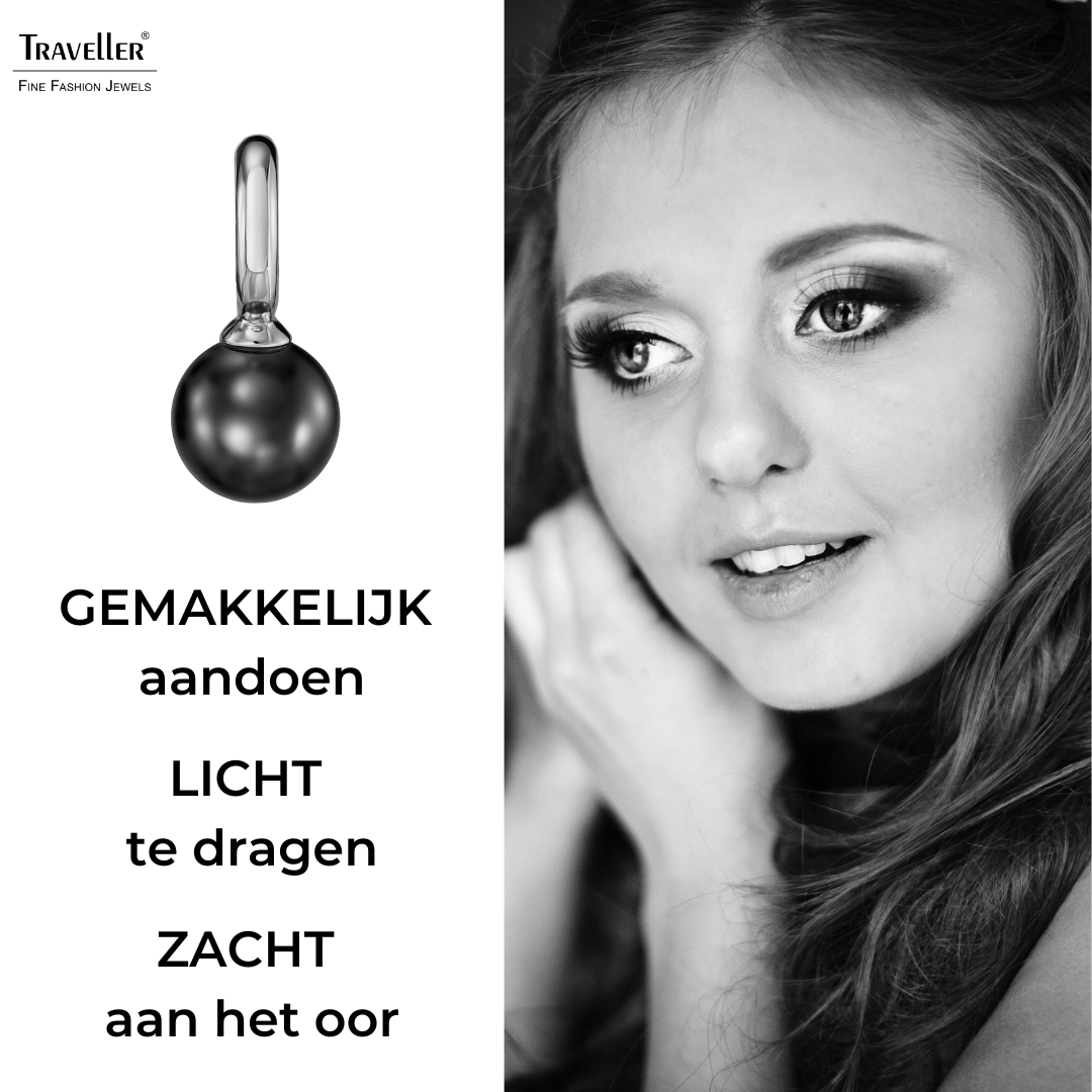 Traveller Oorhangers - Zilverkleurig - Parel - 10mm - Zwart - 20x10 mm